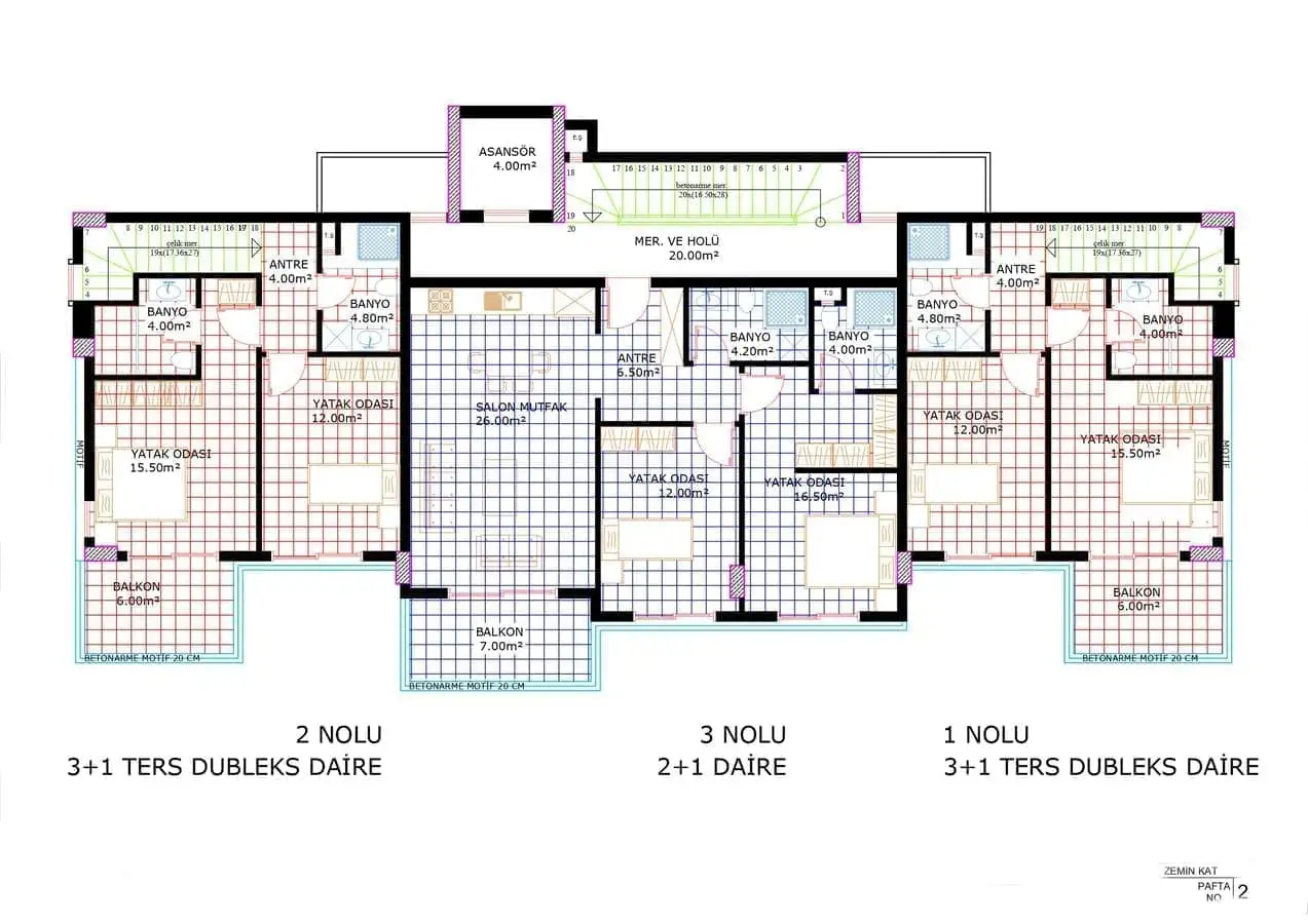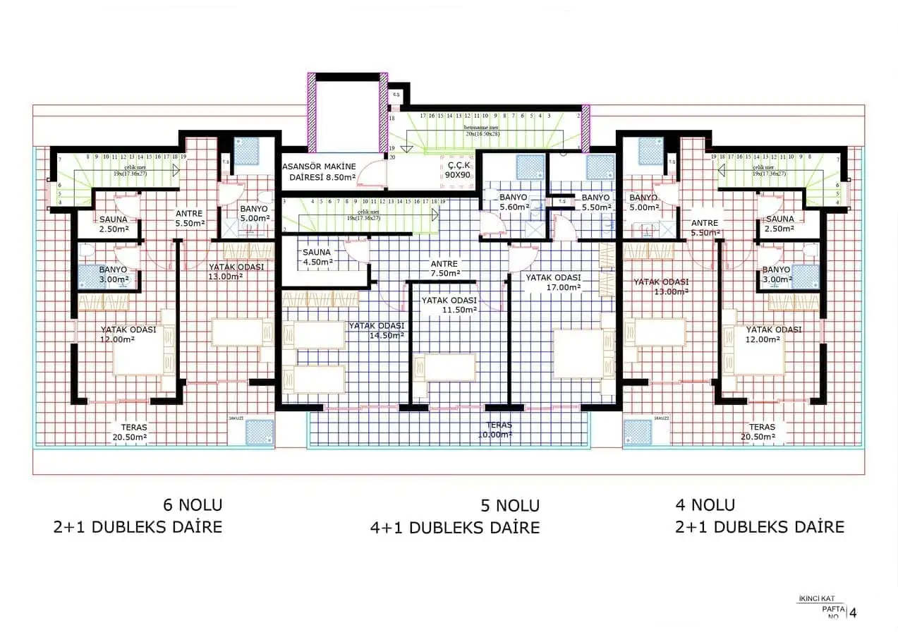 2+1 пентхаусы площадью 151,6 м2;