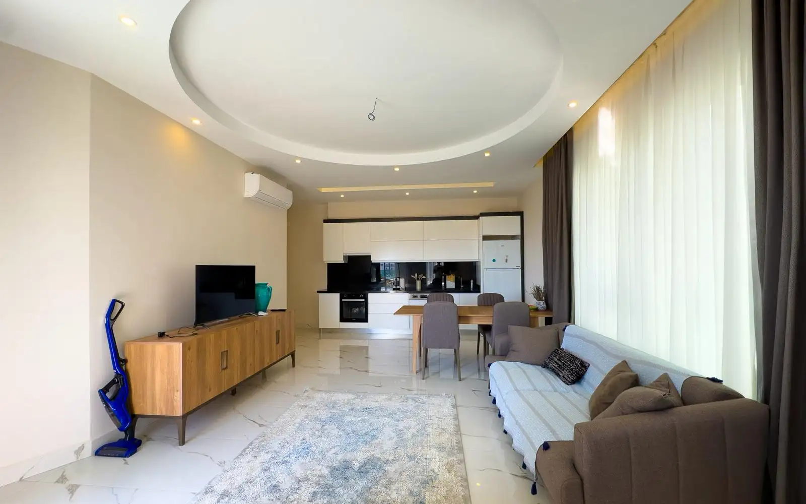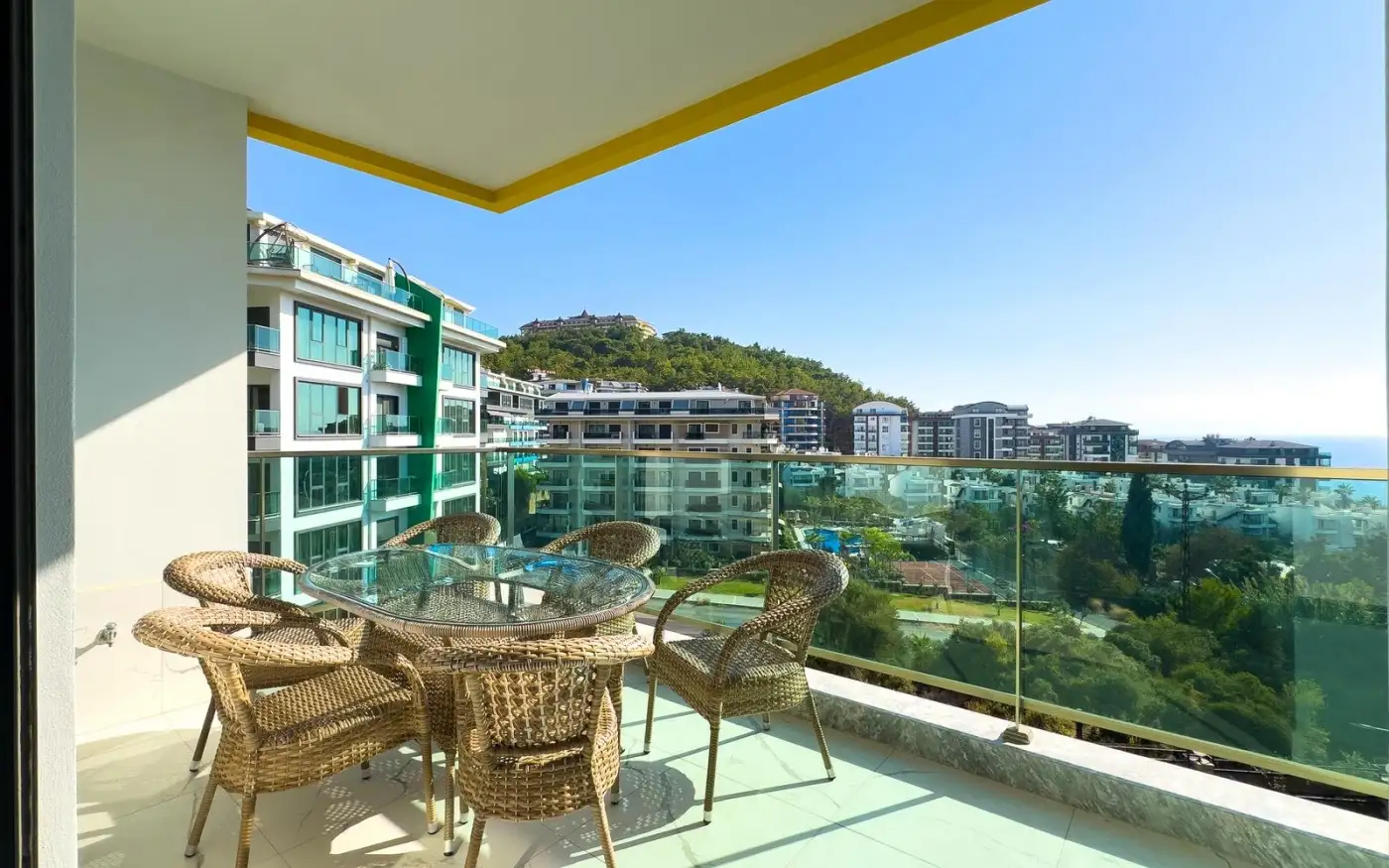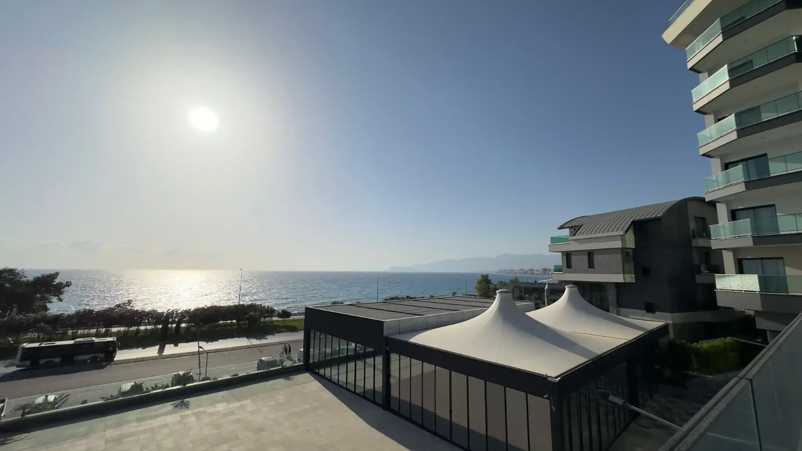 Вы становитесь владельцем просторной квартиры планировки 2+1 с впечатляющим панорамным видом на море, горы и ухоженную территорию комплекса. Из больших окон и уютного балкона открываются картины Средиземного побережья, утопающие в зелени сады и бирюзовые бассейны.