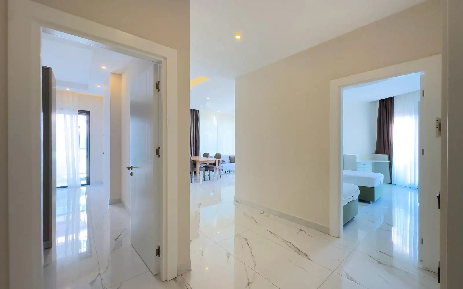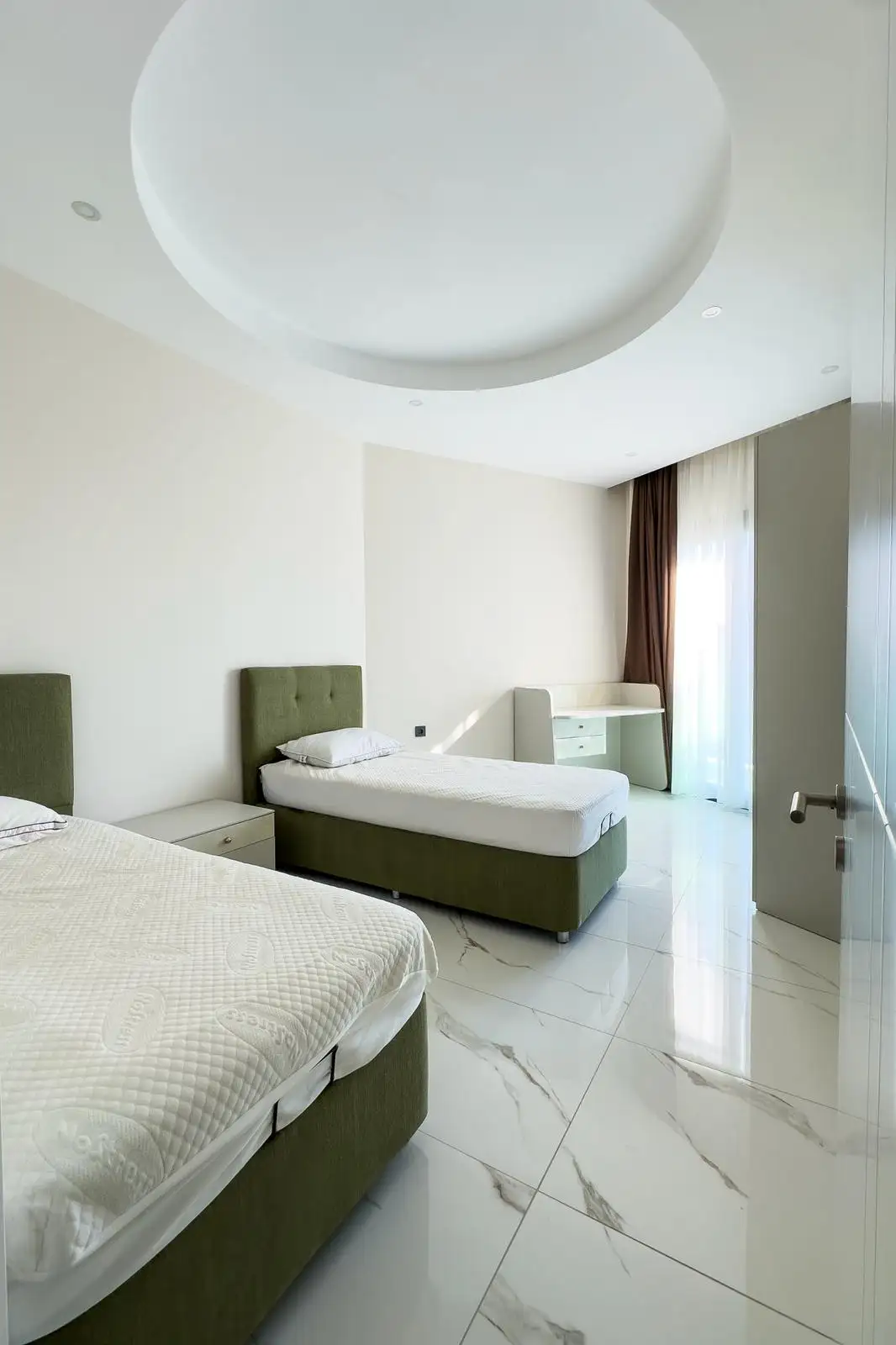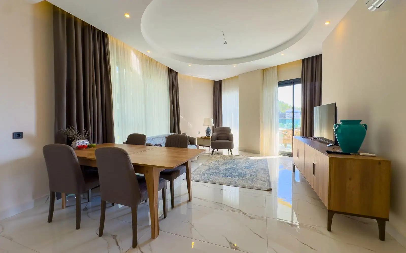 Вы становитесь владельцем просторной квартиры планировки 2+1 с впечатляющим панорамным видом на море, горы и ухоженную территорию комплекса. Из больших окон и уютного балкона открываются картины Средиземного побережья, утопающие в зелени сады и бирюзовые бассейны.
