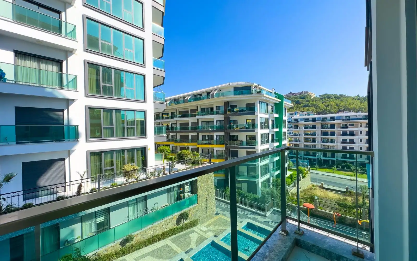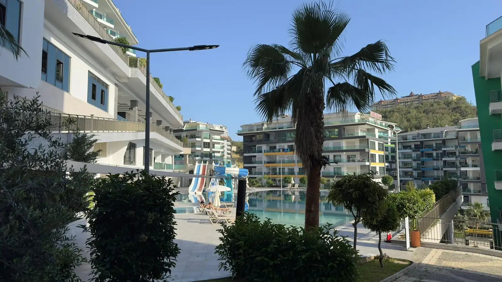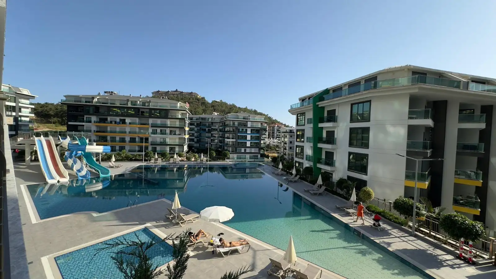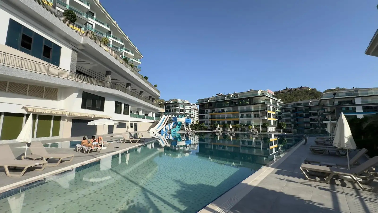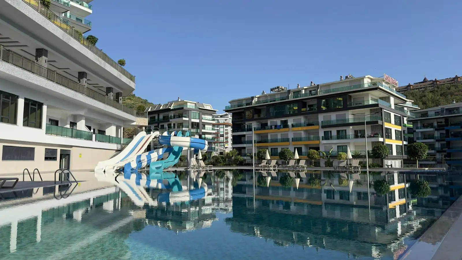 Комплекс предлагает инфраструктуру уровня пятизвёздочного курорта. На собственной закрытой территории: три больших бассейна, бассейн с водными горками, зоны отдыха у бассейнов, два детских бассейна, бар у бассейна, беседки и зона для барбекю, баскетбольная площадка и теннисный корт.