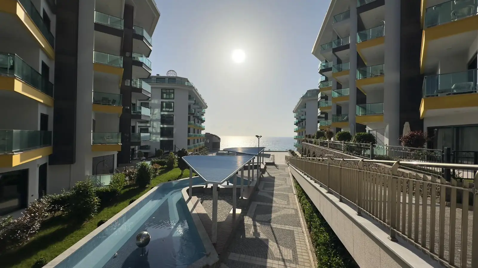 До моря — всего несколько минут пешком. Комплекс располагает собственным оборудованным пляжем с бесплатными шезлонгами и зонтиками для жителей. Пляж Каргыджака славится чистейшей водой и комфортным заходом в море.
