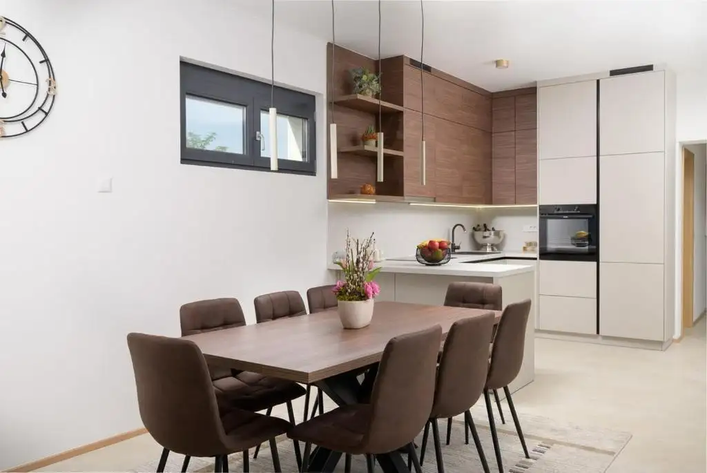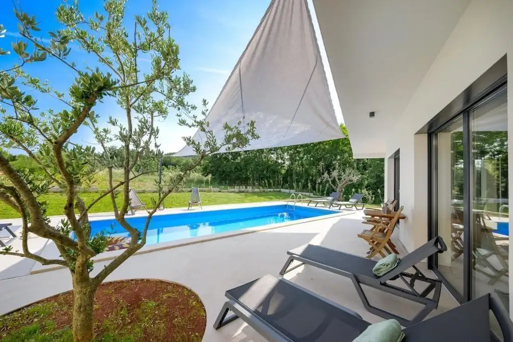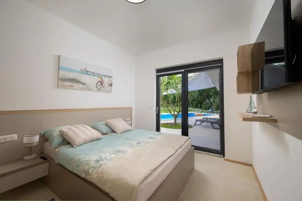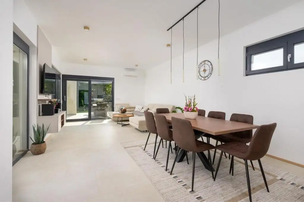 Вилла расположена в небольшом, спокойном поселке, состоящем из семейных домов и частных вилл, предлагая максимальное спокойствие и уединение, оставаясь при этом близко к одному из самых желанных прибрежных городов на Адриатике. Местные магазины и рестораны находятся всего в трех минутах езды, что обеспечивает удобство для круглогодичного проживания.