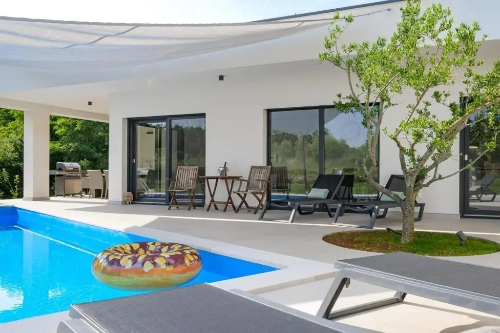 Истрия, Рабац – Современный дом с бассейном, в 8 км от моря! Современный дом, 155 кв.м. на участке 1,000 кв.м. Расположенный на...