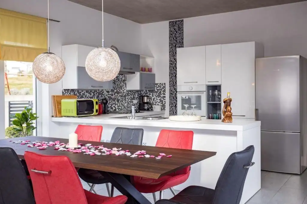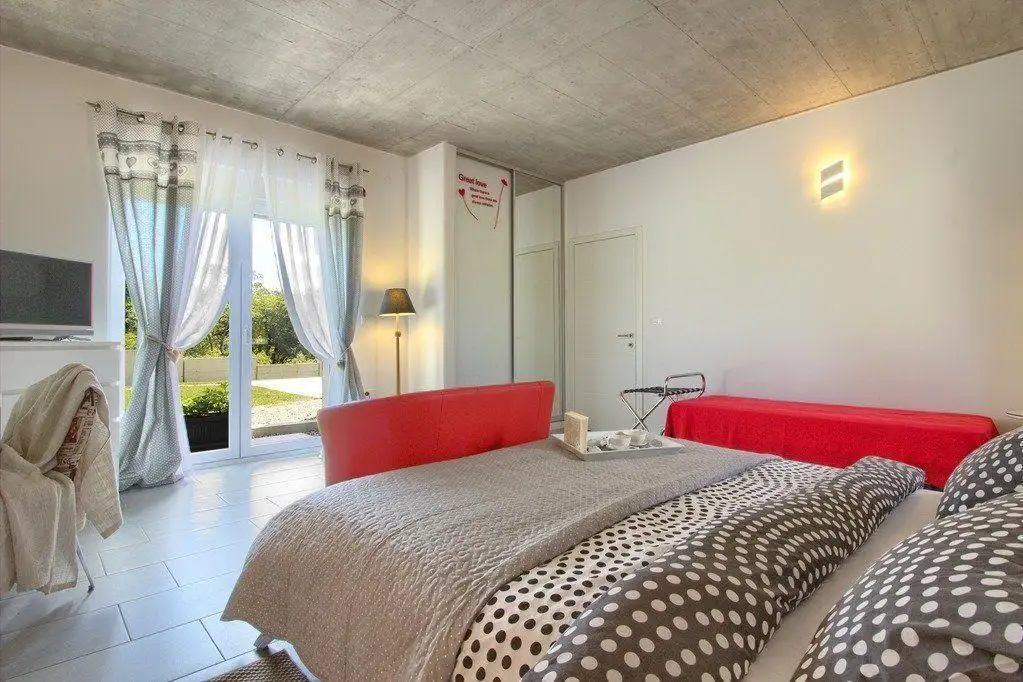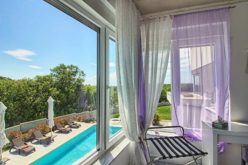 Высококачественные алюминиевые окна с жалюзи, премиальная керамическая плитка и элегантная мебель завершают общее впечатление о роскоши и функциональности. Вилла продается полностью меблированной с тщательно подобранной высококачественной мебелью, что делает ее готовой к немедленному использованию. Эта исключительная собственность представляет собой идеальную инвестиционную возможность для туристической аренды в Хорватии или изысканного загородного дома для любителей современной архитектуры, расположенного в спокойной обстановке средиземноморской зелени и видов на море.