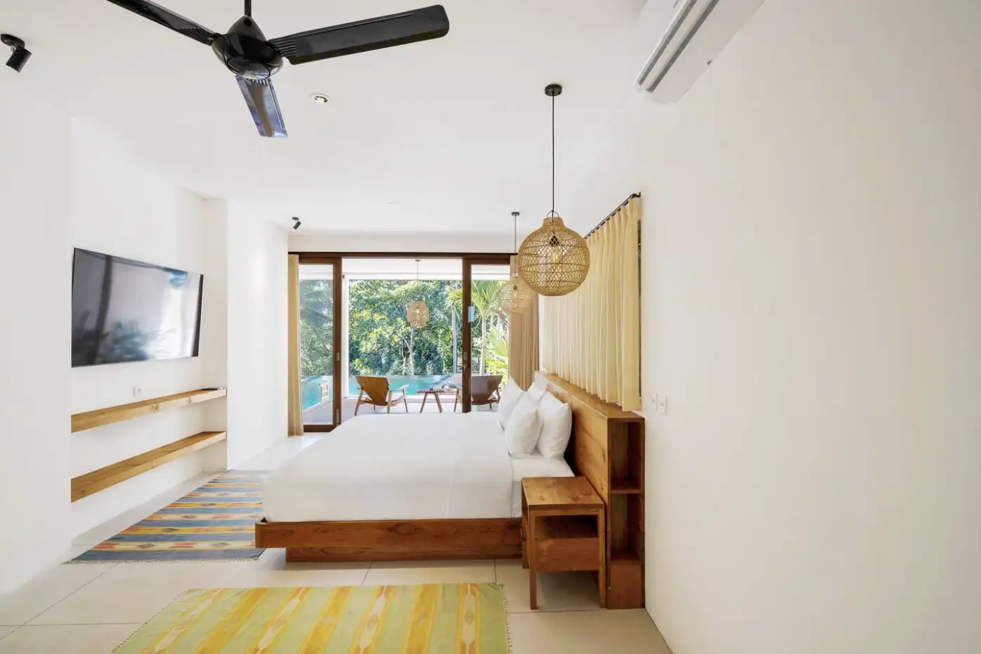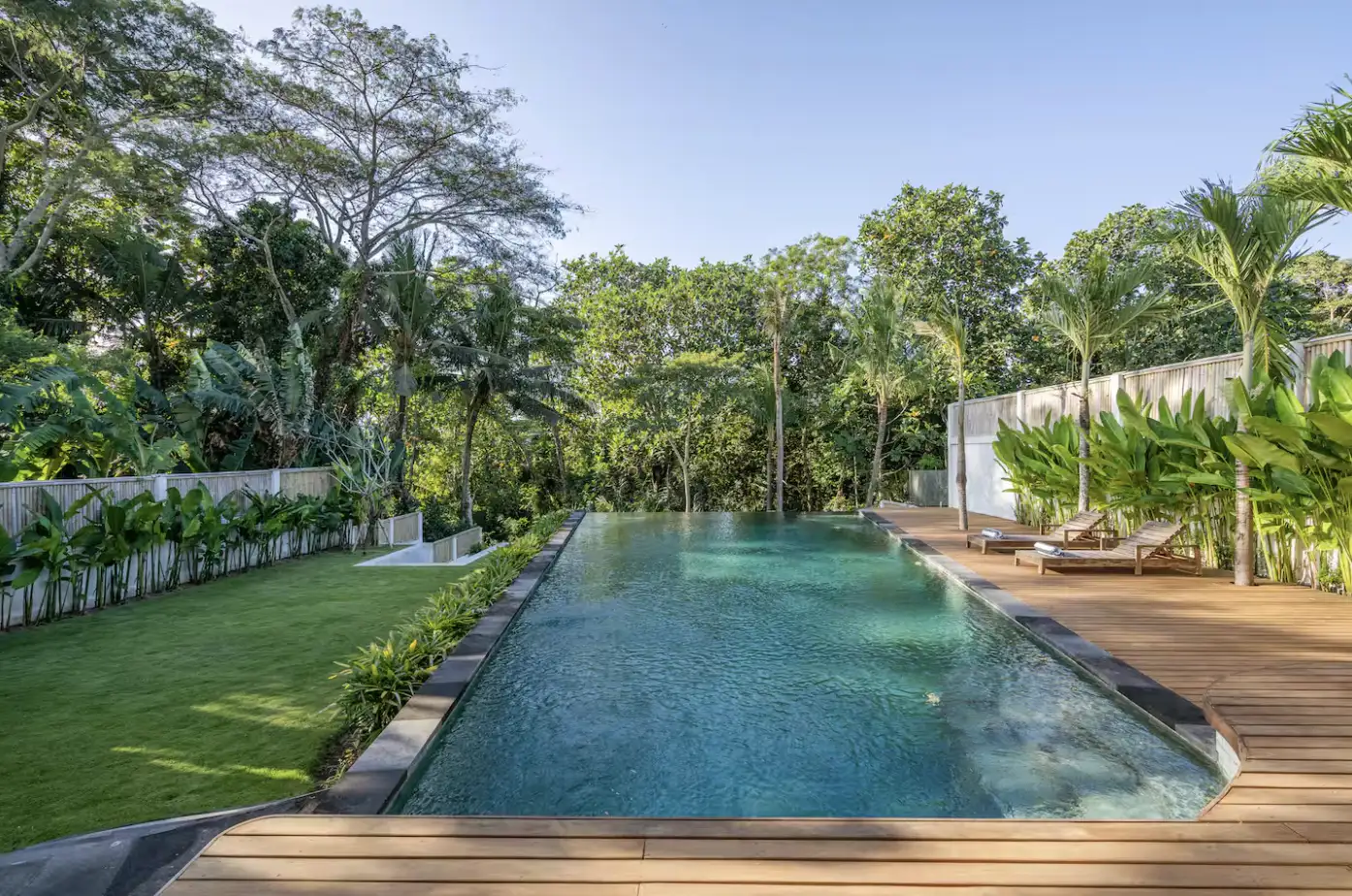 Расположенная в пышном тропическом ландшафте, эта современная двухкомнатная вилла расположена на щедрой 1100 кв.м земли, предлагая привлекательное ощущение пространства, конфиденциальности и безмятежности. Недвижимость сочетает в себе чистые архитектурные линии с природными элементами, создавая изысканное святилище, окруженное зеленью. Длинный бассейн простирается через сад, обрамленный тропическими растениями и просторной деревянной палубой - идеально подходит для принятия солнечных ванн или встреч на открытом воздухе. Его продуманный дизайн максимизирует естественный свет и свежий воздух, обеспечивая комфортный, непринужденный образ жизни на Бали.