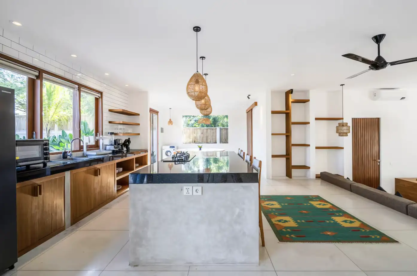 Интерьеры виллы теплые и элегантные, с современной отделкой, высококачественными материалами и большими стеклянными дверями, которые легко соединяются с открытыми площадками. Обе спальни оборудованы ванными комнатами и открыты на частной террасе с видом на бассейн и сад. Закрытая гостиная и кухня образуют сердце дома — функциональное и стильное, идеальное для повседневной жизни или развлечения гостей. В дополнение к мебели из натурального дерева и мягкому освещению, каждый уголок этого дома чувствует себя гармонично и гостеприимно. Разработанная для комфорта и практичности, вилла предлагает обширную парковку, просторный вход и безопасное ограждение для конфиденциальности. Окружающая среда обеспечивает спокойствие, оставаясь рядом с местными кафе, оздоровительными центрами и удобствами. Независимо от того, используется ли эта недвижимость в качестве частной резиденции или долгосрочного отдыха, она представляет собой идеальную возможность ежегодной аренды, предлагая как роскошь, так и подлинную связь с природной красотой Бали.