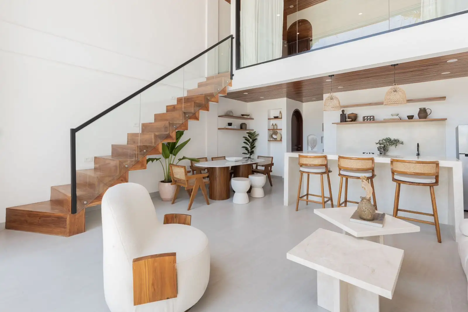 Расположенная всего в 8 минутах от знаменитого пляжа Бингин, эта стильная двухэтажная вилла предлагает идеальное сочетание тропического очарования и современного комфорта. Построенный на 155 кв.м. земли с общим размером здания 200 кв.м., объект имеет элегантный дизайн, который подчеркивает открытые жилые помещения, естественный свет и спокойную атмосферу. Его стратегическое расположение в розовой зоне (туристическая зона) делает его идеальным как для личного пользования, так и для деловых целей, обеспечивая сильный потенциал для краткосрочного и долгосрочного дохода от аренды.