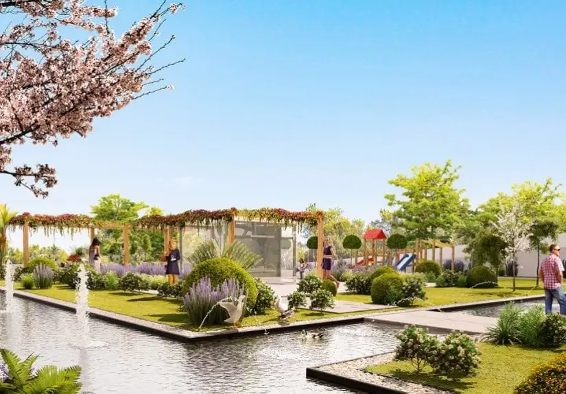 В ландшафте, который составляет 70% проекта, есть игровые площадки, сады и кафе. Социальные объекты в проекте включают отдельные бассейны, тренажерные залы, сауны и турецкие бани для женщин и мужчин