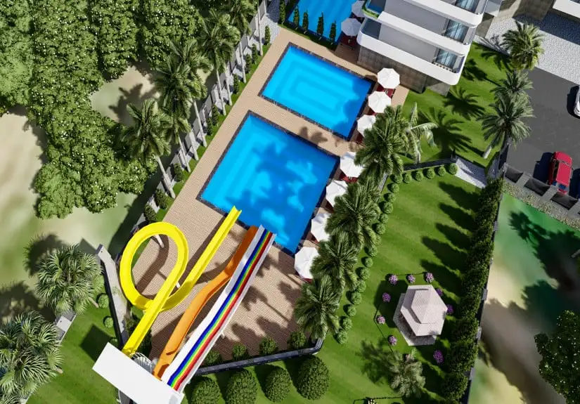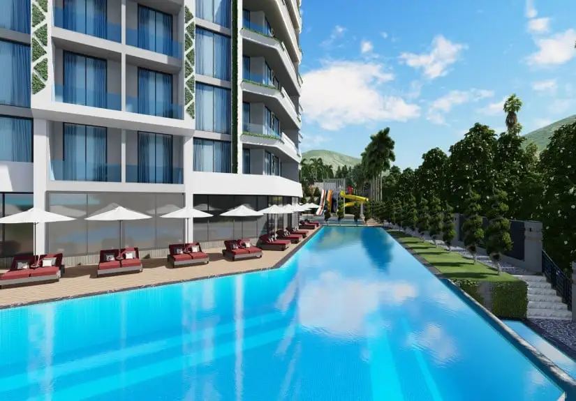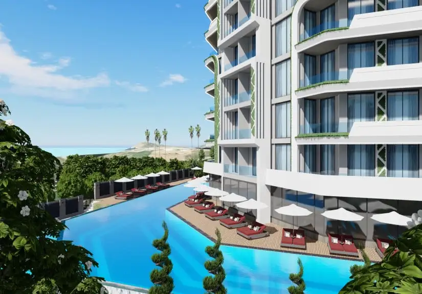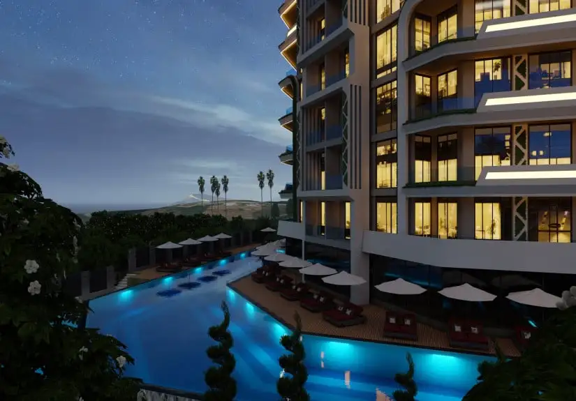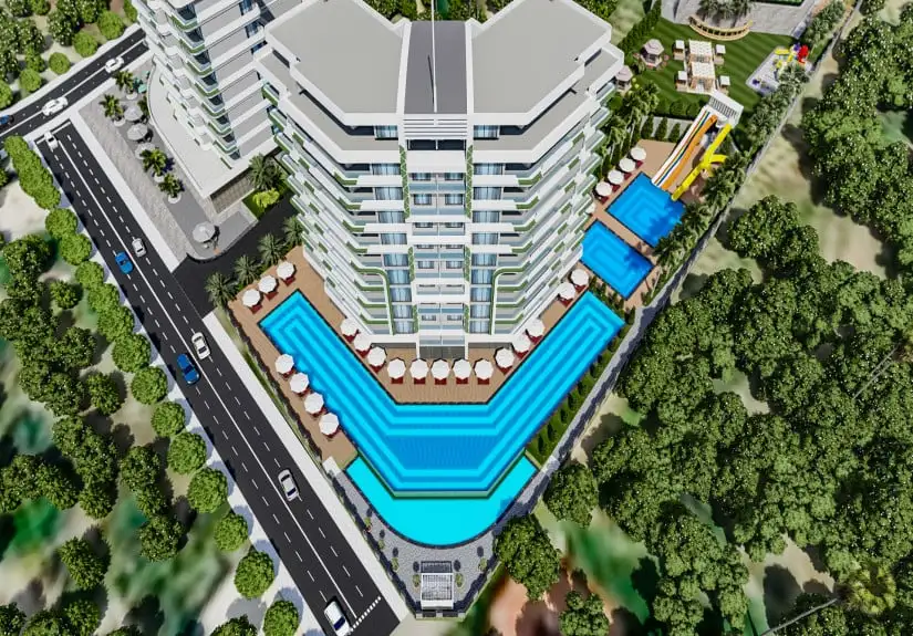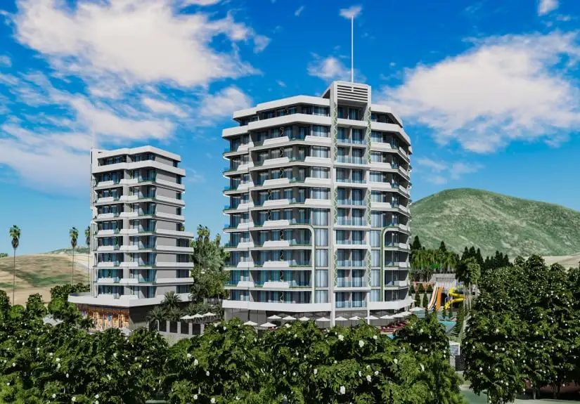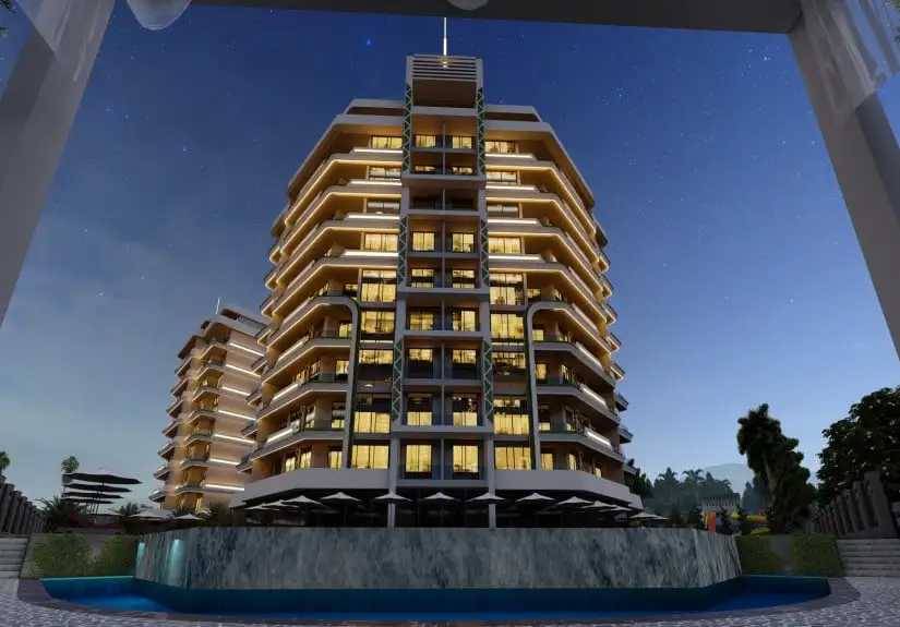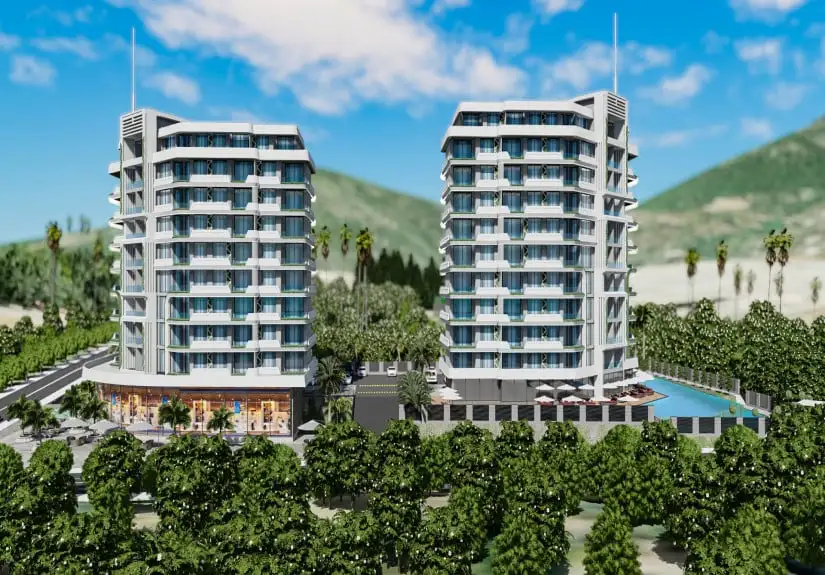 Проект представляет собой роскошный жилой комплекс, состоящий из двух восьмиэтажных зданий. Здания имеют современный и инновационный дизайн, который сочетается с общей инфраструктурой. Проект имеет различные планировки квартир в соответствии с вашими потребностями. Здание включает в себя 1-комнатные квартиры, включающие 45 м2, 2-комнатные квартиры, включающие 68 кв.м, 2-комнатные дуплексные квартиры, включающие 90 кв.м, и 3-комнатные дуплексные квартиры, включающие 130 кв.м. Из каждой квартиры открывается вид на великолепные скалистые горы Антальи.