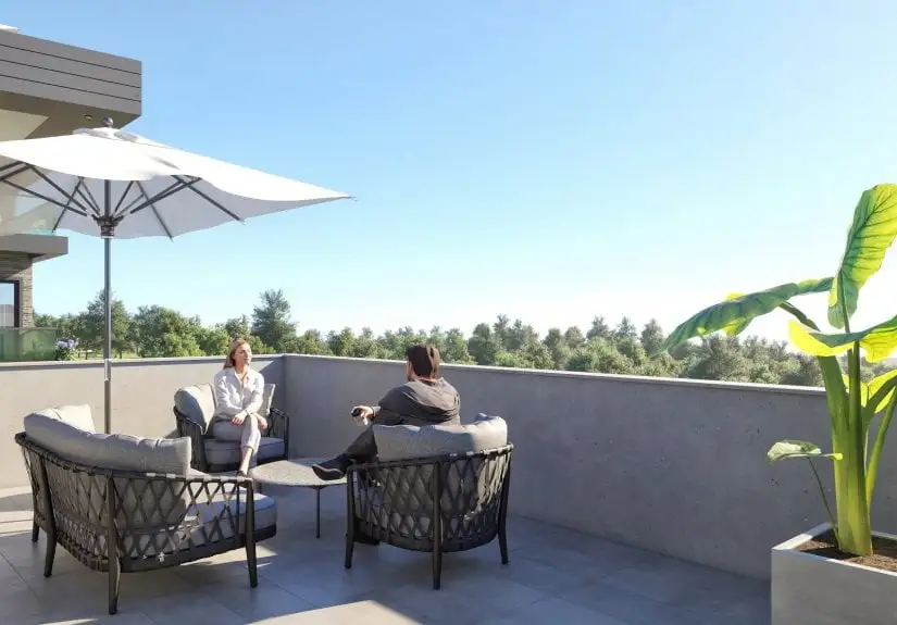 Кроме того, в проекте есть общий бассейн площадью 150 квадратных метров и социальные пространства, способствующие социальному взаимодействию с вашими соседями.