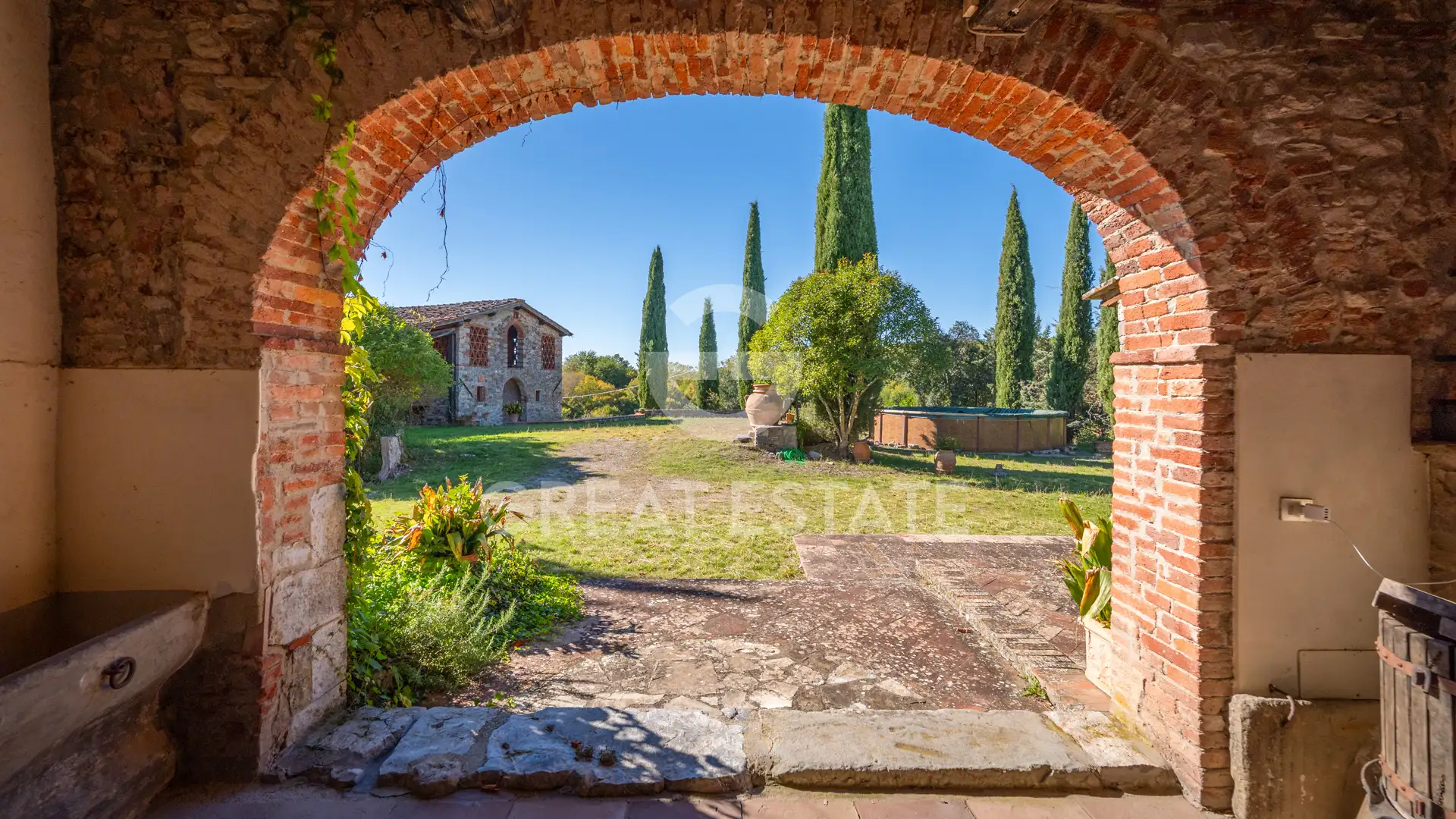 Стратегически расположенный между Гайоле в Кьянти и Сиене, объект состоит из трех основных зданий: старой мельницы, теперь преобразованной в главную резиденцию; сарая в состоянии раковины; и бывших конюшен / складских помещений.
