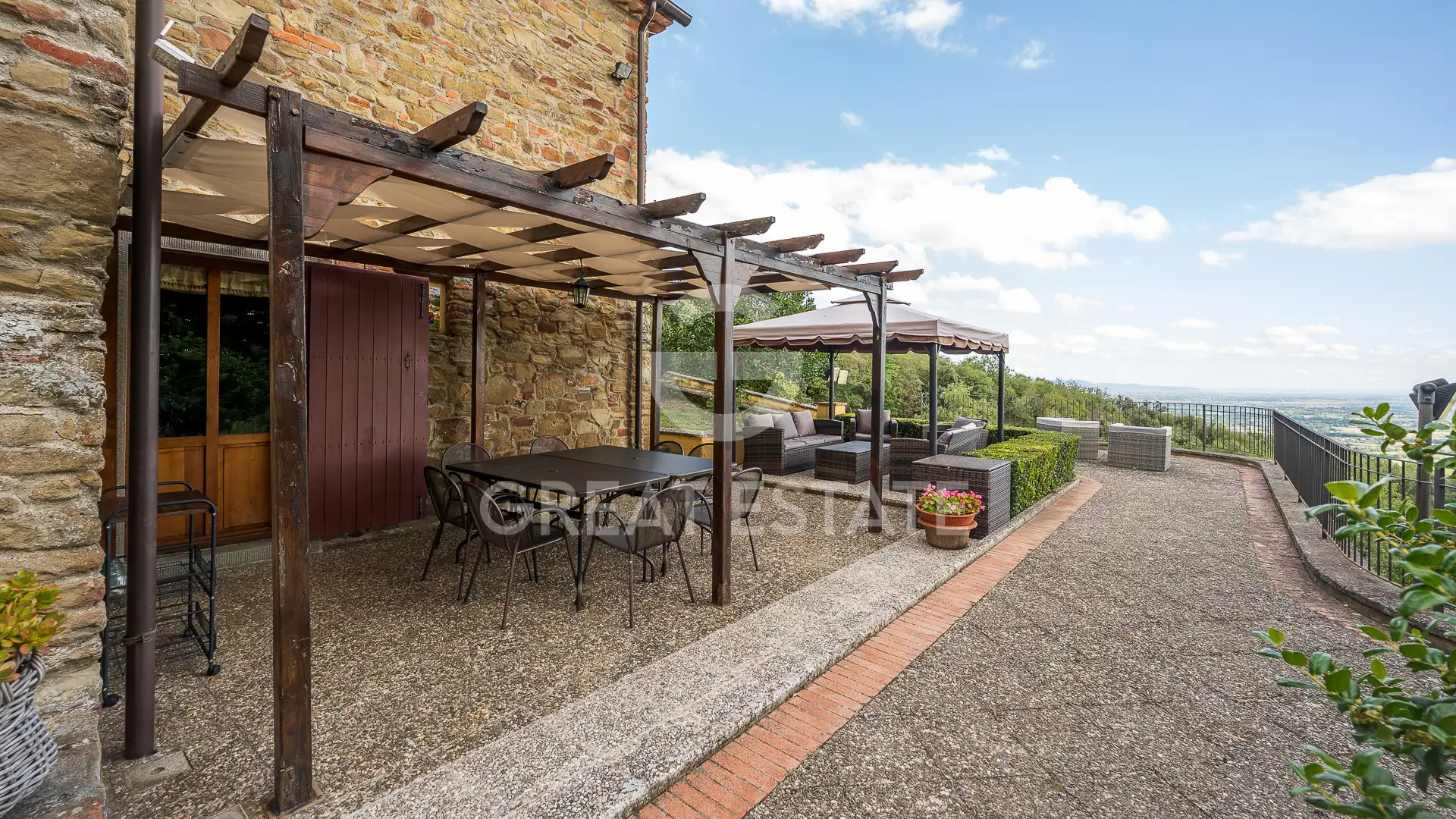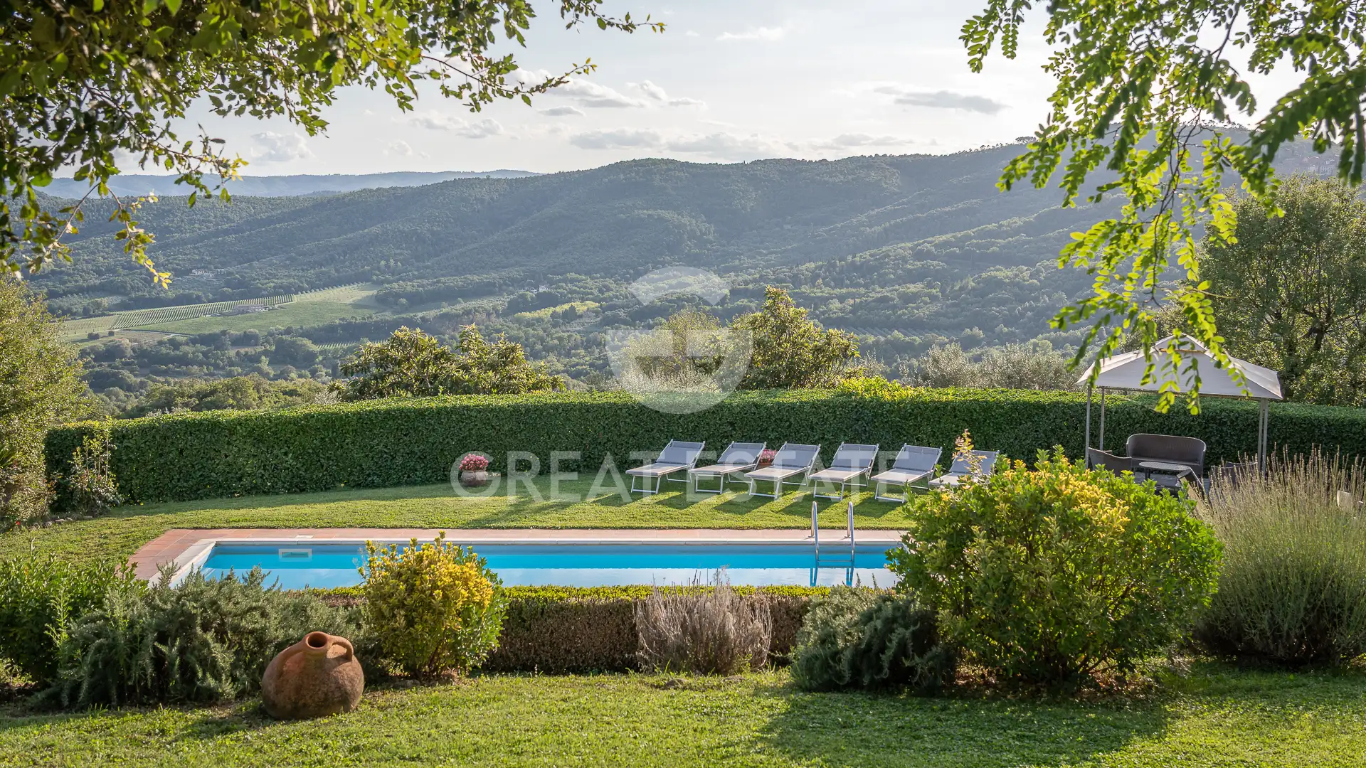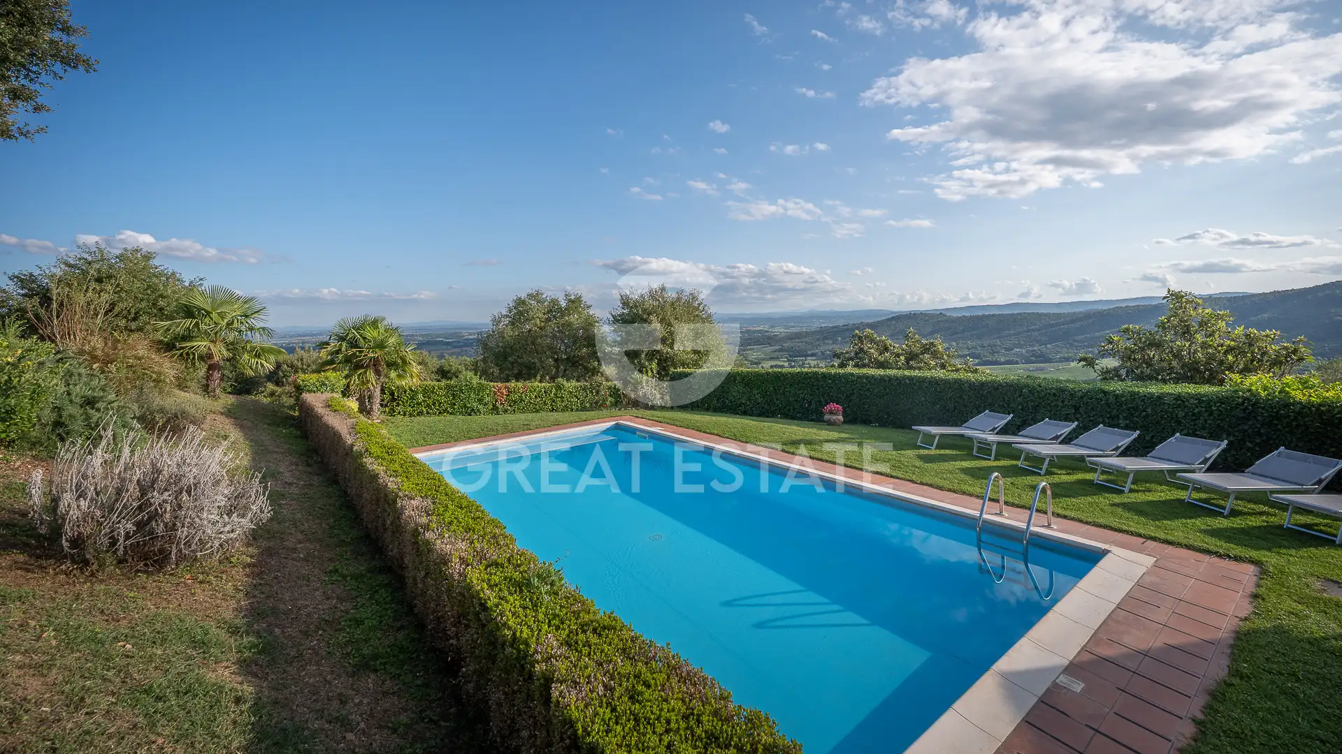 Снаружи ухоженный сад усиливается 10x5-метровым бассейном, идеальным убежищем для отдыха, наслаждаясь видом на окружающие холмы. В одном углу сада есть терраса, идеально подходящая для обеда на фреске или для аперитива в полном спокойствии, с очаровательным видом на долину и деревню Чивителла в Валь-ди-Кьяна, расположенную на вершине холма впереди.