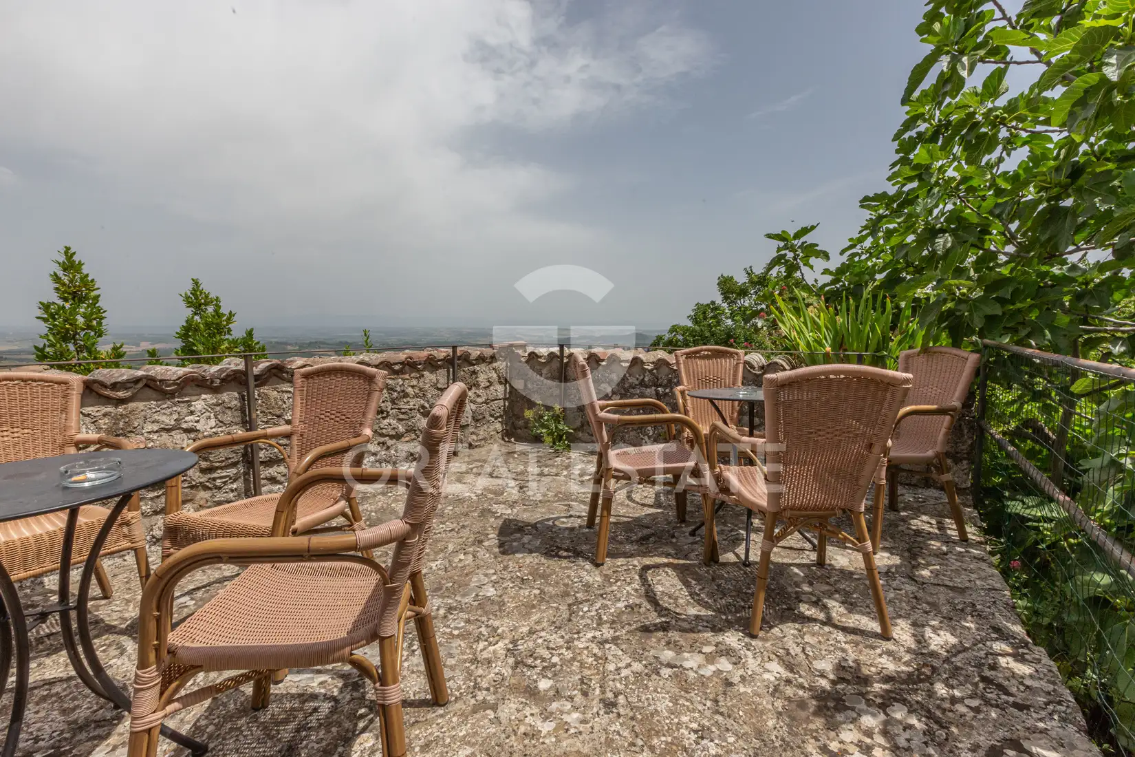 Недвижимость на продажу (бывший женский монастырь ордена монахинь Клариссы), являющийся частью крепостных стен старинного Сартеано (провинция Сиены). Это здание, которое с течением времени использовалось для различных целей - вначале как монастырь, затем как начальная школа и, наконец, как госпиталь/приют для раненых немецких солдат итальянского фронта второй мировой войны), сегодня - элегантный гостиничный комплекс, расположенный в зоне между известными термальными курортами долин Вальдикьяна и Валь-д'Орча. Собственность представляет собой монументальный комплекс бывшего монастыря на трех уровнях площадью более 1400 кв. м и используется как отель-ресторан, с парком/садом 1500 кв. м и оливковой рощей площадью 1710 кв.м. В нескольких метрах от структуры находится еще одно здание, требующее консервативных (с сохранением его архитектурного стиля) реставрационных работ. Первый и второй этажи здания - отель: - L-образная форма первого этажа простирается вдоль центрального корпуса, из которого через небольшие коридоры можно попасть в шесть двухместных номеров с ванными комнатами, а также в апартаменты, которые ранее служили жильем для настоятельницы монастыря (здесь сохранилась оригинальная пекарня); на этом же уровне находится офис, а также вход с улицы исторического центра города. На цокольном этаже, куда ведет главная лестница, находится квартира (с кроватями для 11 человек) с двумя ванными комнатами и действующим камином (сдаваемая в аренду понедельно). На цокольном этаже, используемом для ресторанной деятельности, расположены: прихожая для приема гостей, два обеденных зала на 80 мест, кухня, разделенная на два отдельных помещения, два туалета для гостей, коридор с туалетом для персонала, котельная, две кантины и вспомогательные помещения ( для дров и/или кладовые).