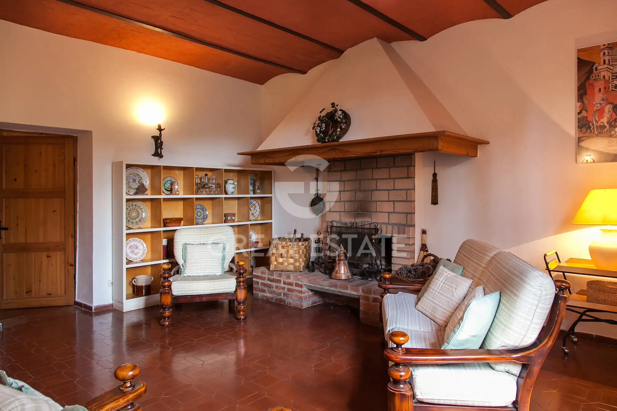 Центральная каменная лестница ведет на верхний этаж, где ждут три светлые спальни, а также проходная с камином, в настоящее время используемая в качестве кабинета, и современная ванная комната. Деревянные балочные потолки и терракотовая кирпичная кладка придают аутентичную и теплую атмосферу, в то время как каждое окно дает очаровательный вид на окружающий пейзаж.