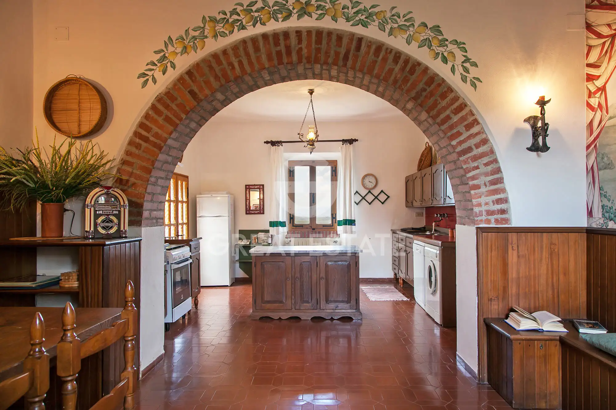 Рядом с домом находятся тщательно сохранившийся курятник, веранда и три террасы, идеально подходящие для наслаждения солнцем и тенью в любое время дня. На первом этаже вас приветствует просторная кухня-живая площадь с прямым доступом к террасе и оригинальной дровяной печи, наряду с практичной кладовой и кладовой. Завершает этот уровень уютная гостиная со сводчатыми потолками и открытым камином, а также ванная комната с ванной и душем.