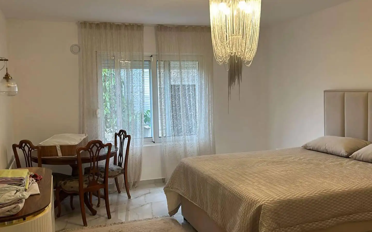 состоит из внутренней лестницы из прихожей, большой гостиной с камином, панорамных стеклянных окон с видом на Стари-Бар и окружающие горы, двух дополнительных спален