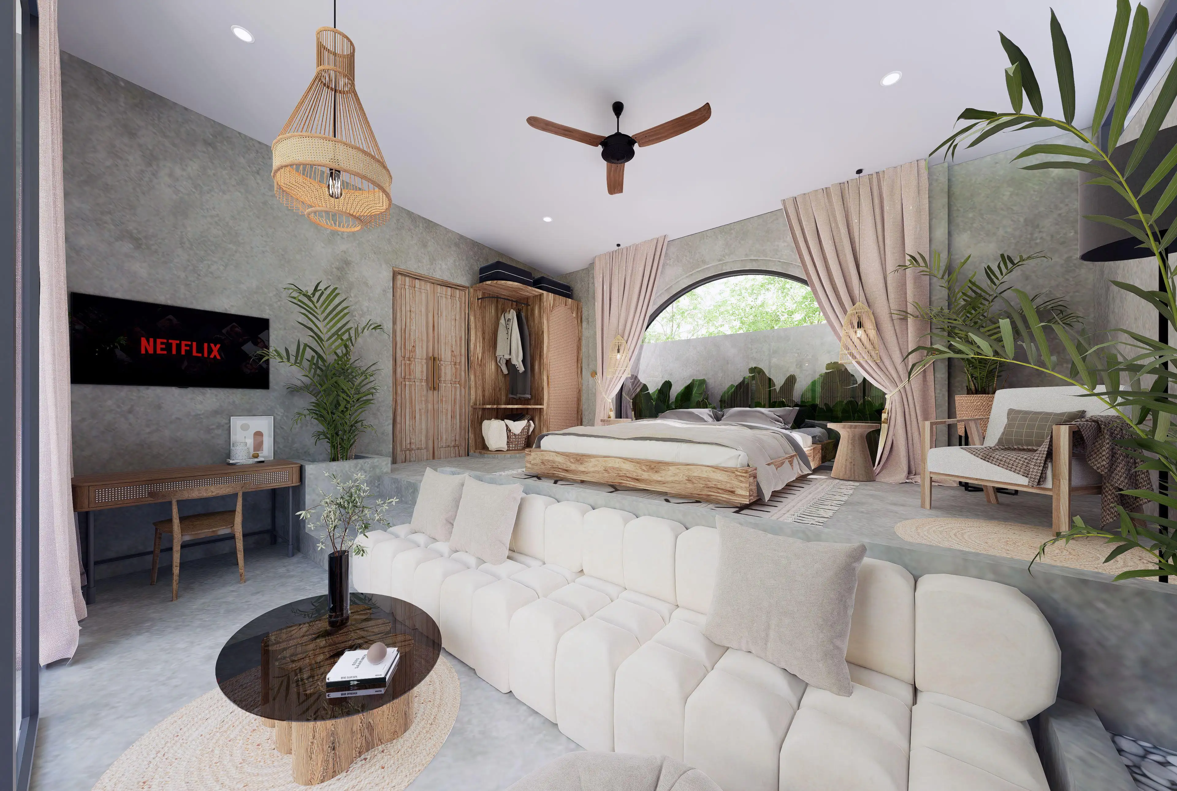 Расположенный на безмятежном склоне холма Унгасан, этот комплекс вилл представляет собой отличную возможность для долгосрочных инвестиций. В собственности есть четыре частные виллы, каждая из которых спроектирована с одной спальней и одной ванной комнатой, что обеспечивает комфорт и функциональность. Каждая вилла полностью меблирована закрытой гостиной, современной кухней и частным бассейном, предлагая полный пакет образа жизни для гостей или арендаторов. Комплекс расположен в стратегическом месте, вдали от шумных толп, но все еще доступен для ключевых направлений в районе Букит. Его спокойное окружение и возвышенное положение создают идеальный баланс между конфиденциальностью и удобством, что делает его привлекательным как для краткосрочной аренды, так и для долгосрочного пребывания. Дизайн максимизирует комфорт, сохраняя при этом сильный акцент на современной тропической жизни.