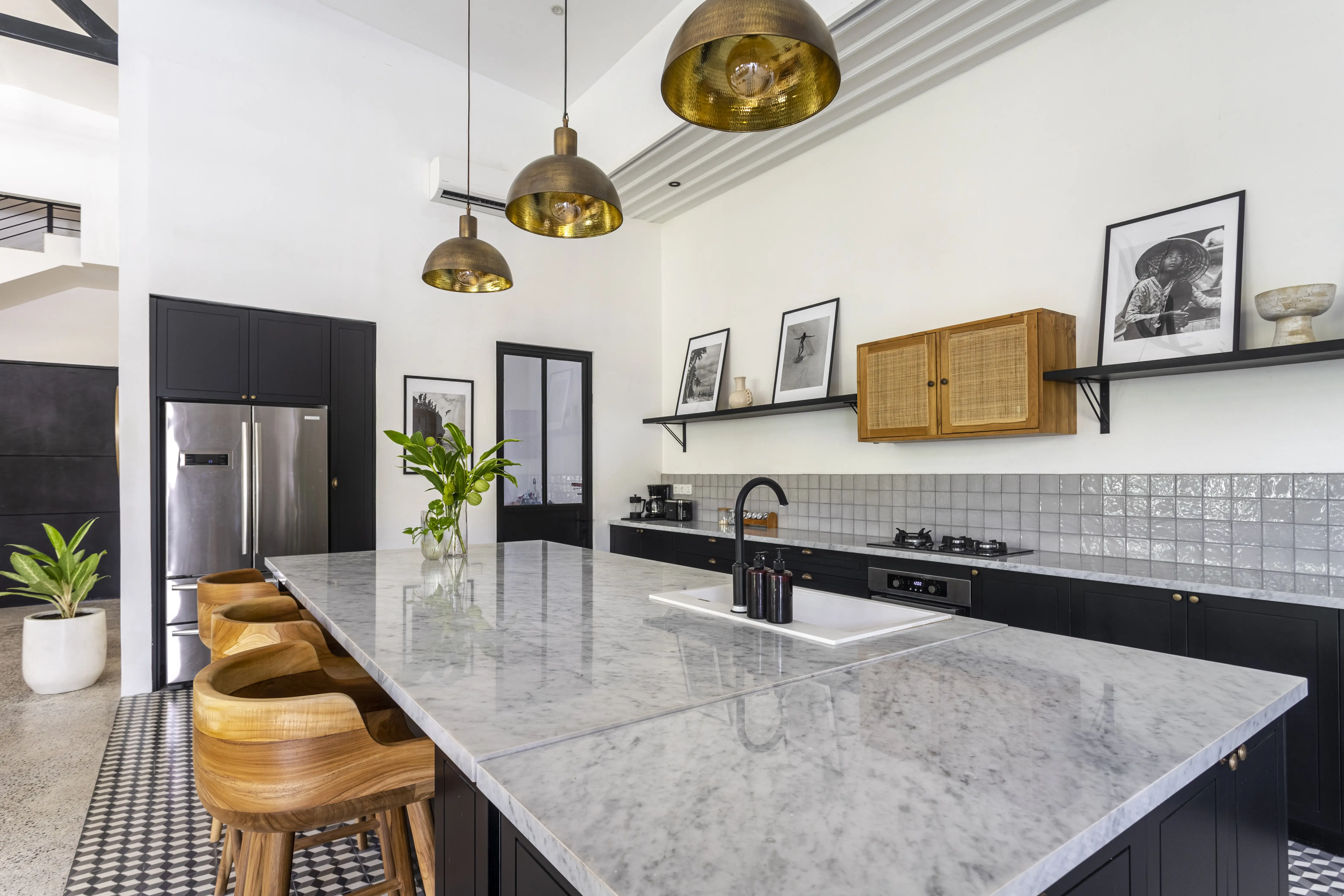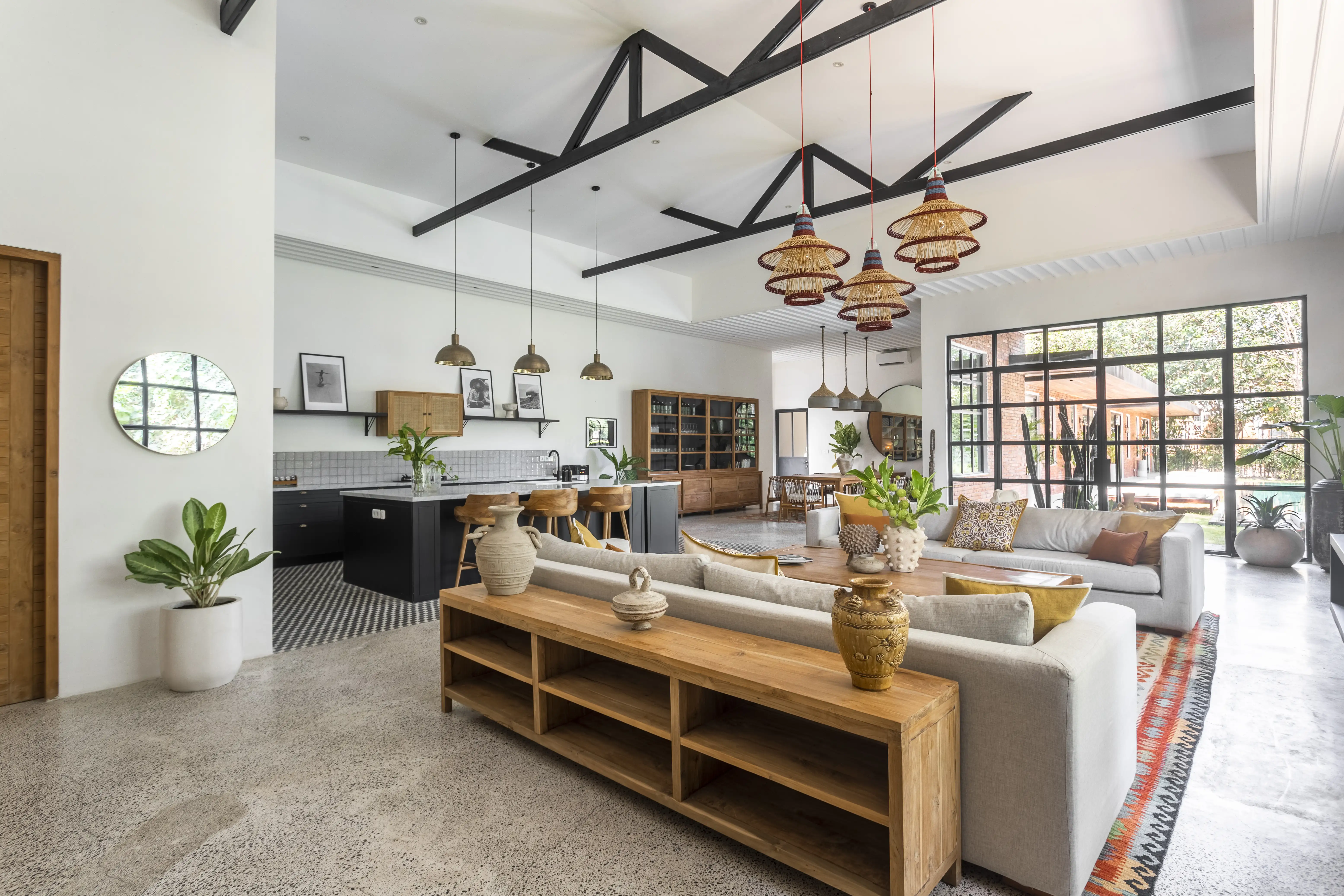 Расположенная на просторном участке площадью 7 гектаров (700 кв.м.) в центре Переренана, эта красиво спроектированная вилла с 5 спальнями предлагает идеальное сочетание комфорта, стиля и фирменного тропического образа жизни Бали. Всего в пяти минутах от пляжа Переренан, отель предлагает идеальные условия для тех, кто ищет спокойный, но яркий прибрежный опыт. Вилла имеет поразительную гостиную открытой планировки с парящими потолками и открытыми балками, создавая воздушное, светлое пространство. Широкие стеклянные двери соединяют интерьер с пышным садом и бассейном, приглашая естественный свет и зелень в дом. Вдумчивая отделка, включая полированные бетонные полы, деревянные акценты ручной работы и плетеные подвесные огни, улучшают современную тропическую атмосферу. Первый этаж посвящен бесшовной семейной жизни и развлечениям. Просторная гостиная и столовая впадают в полностью оборудованную кухню с большим мраморным островом и достаточным хранилищем. Пять хорошо оборудованных спален обеспечивают уединение и комфорт, каждая со своей собственной ванной комнатой и спокойным видом на сад или бассейн. Гибкие пространства позволяют легко адаптировать комнаты для домашних офисов, оздоровительных зон или детских игровых комнат. Наружная жизнь возвышается ландшафтным садом, частным бассейном и затененными зонами отдыха, идеально подходящими для отдыха или проведения собраний. Расположение виллы способствует естественному крытому образу жизни, сохраняя при этом комфорт и функциональность.