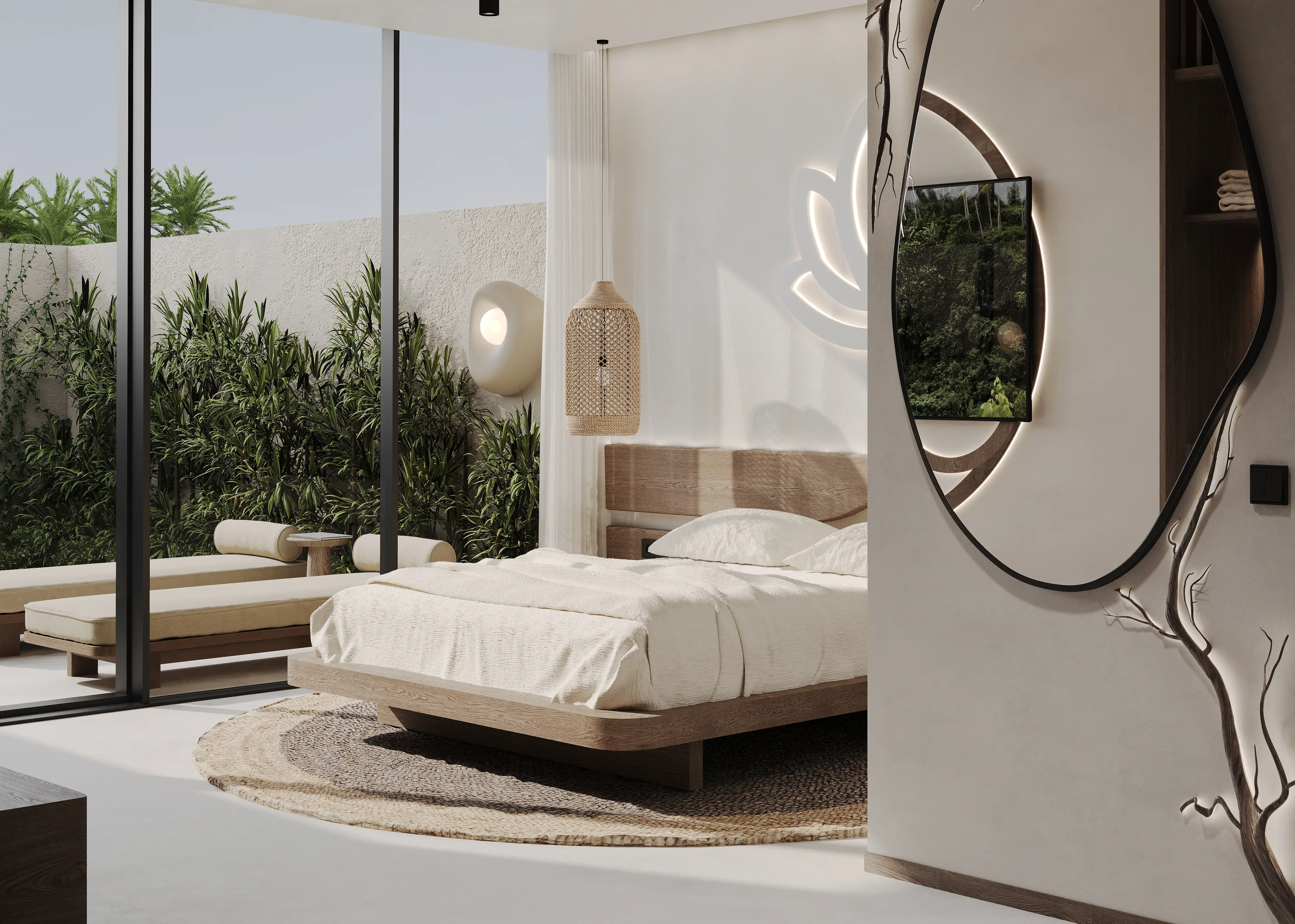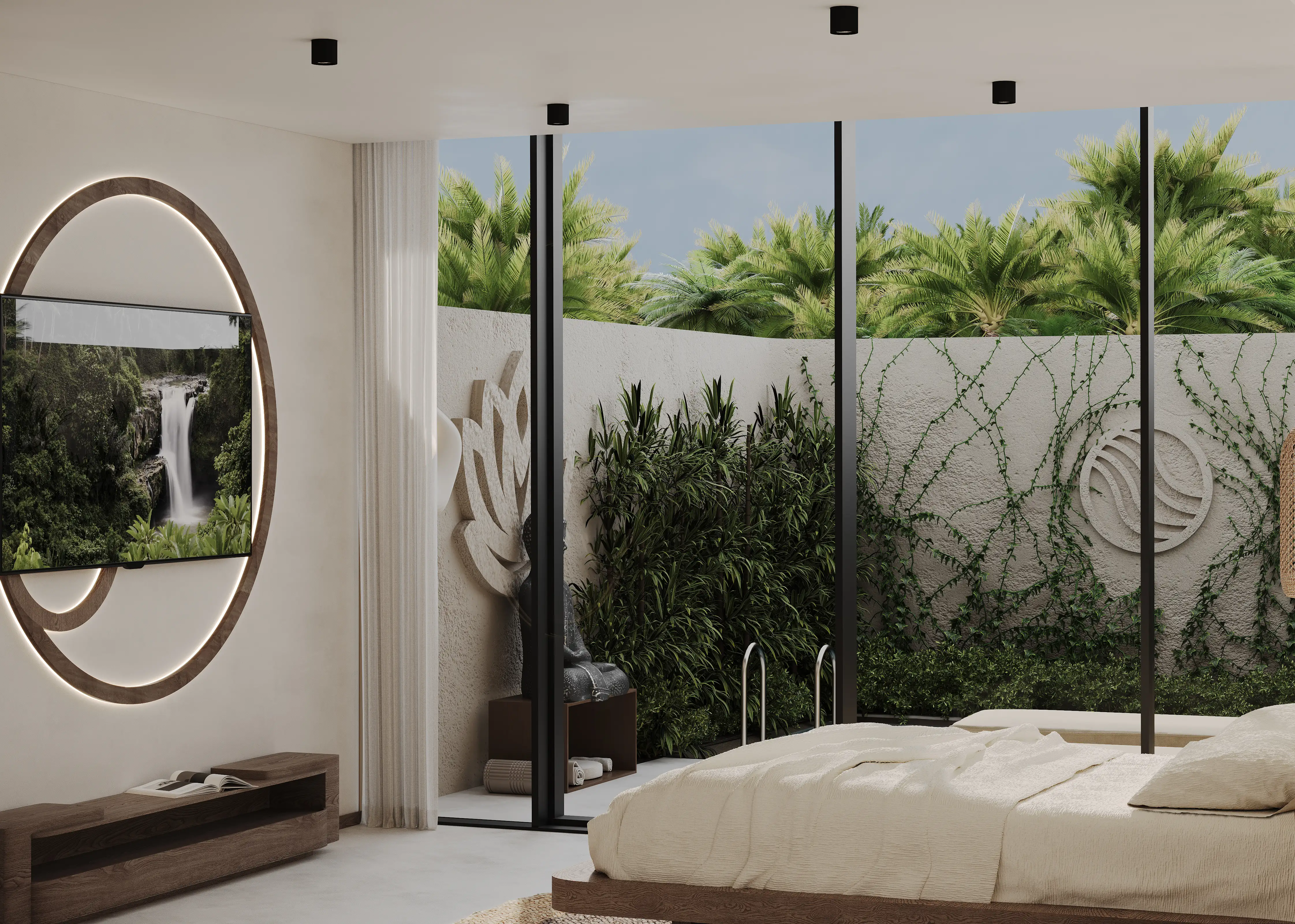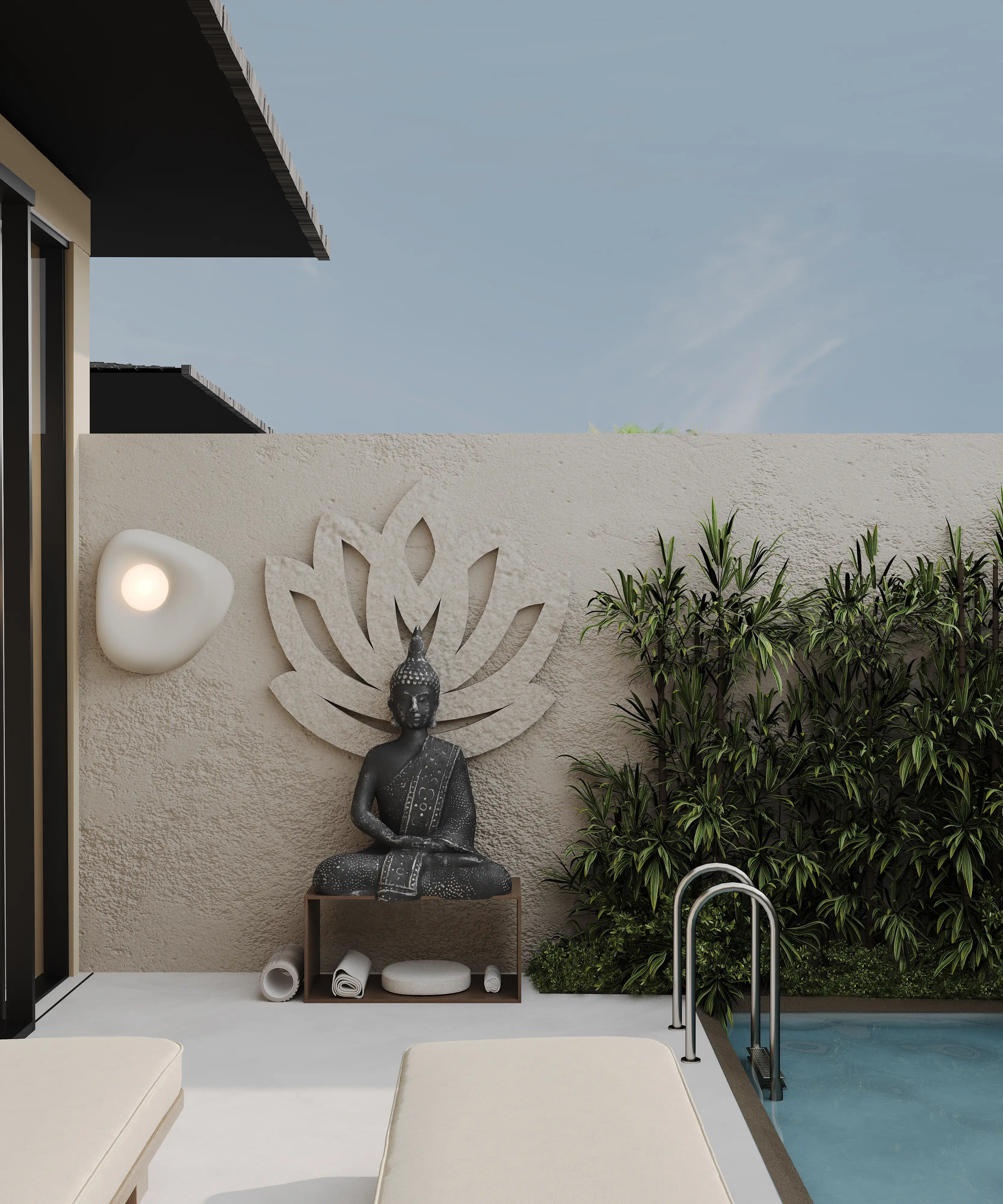 На участке площадью 50 кв. м с размером здания 25 кв. м вилла доступна в нескольких вариантах макета, что позволяет вам выбирать между частным бассейном, открытой ванной или пышной садовой зоной, которая усиливает ощущение пространства и связи с природой. Каждый уголок призван объединить комфорт и функциональность, охватывая как современный дизайн, так и тропический характер.