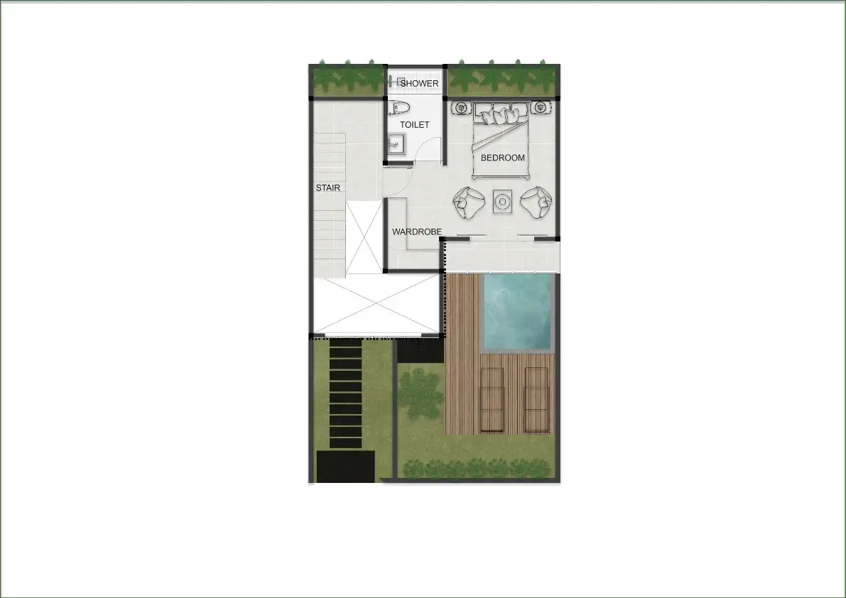 Stylish Tropical Retreat: Mezzanine 1-Bed Villa with Contemporary Finishes and Strategic Location in the Heart of Bali’s Southern Coast