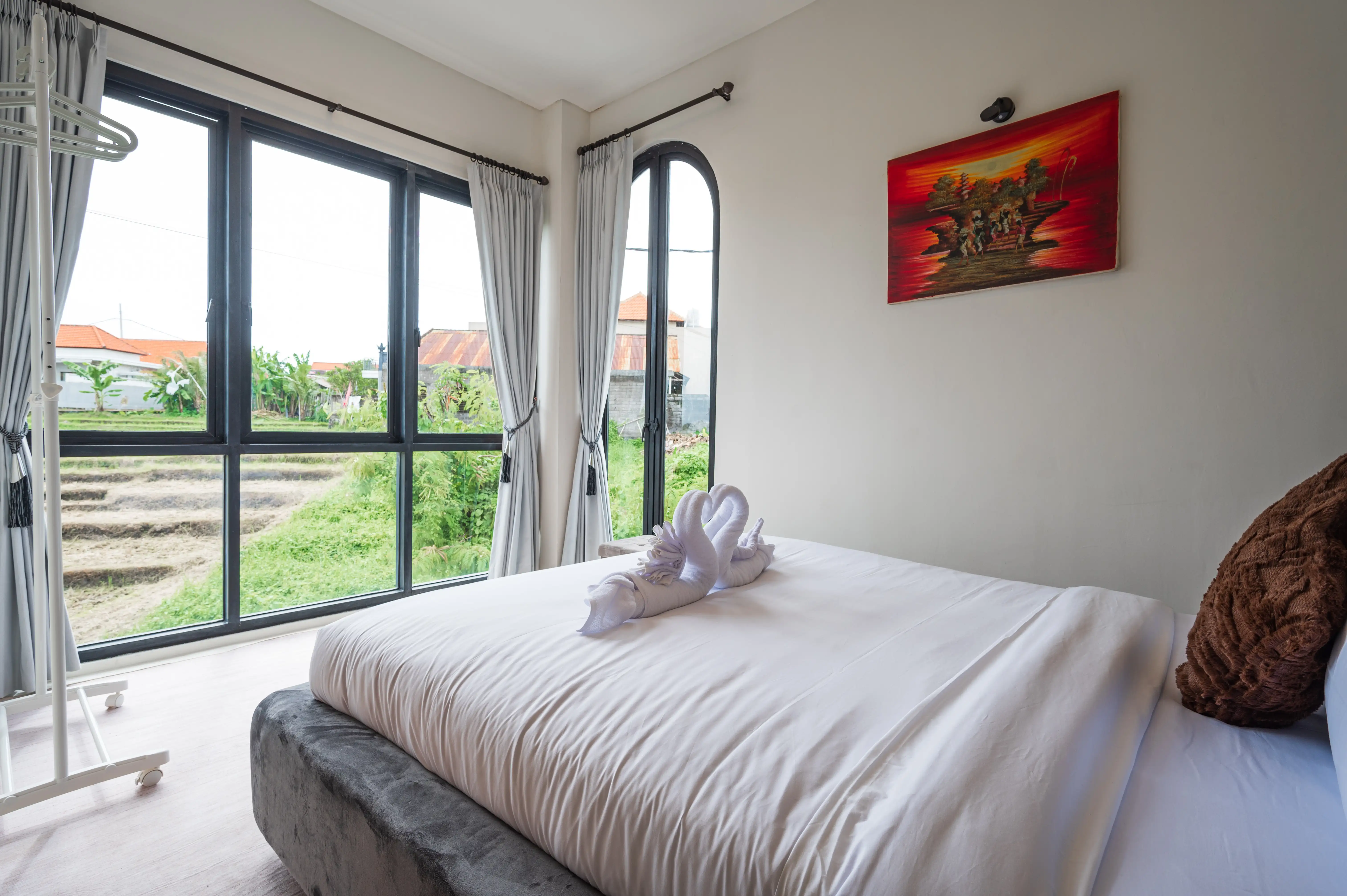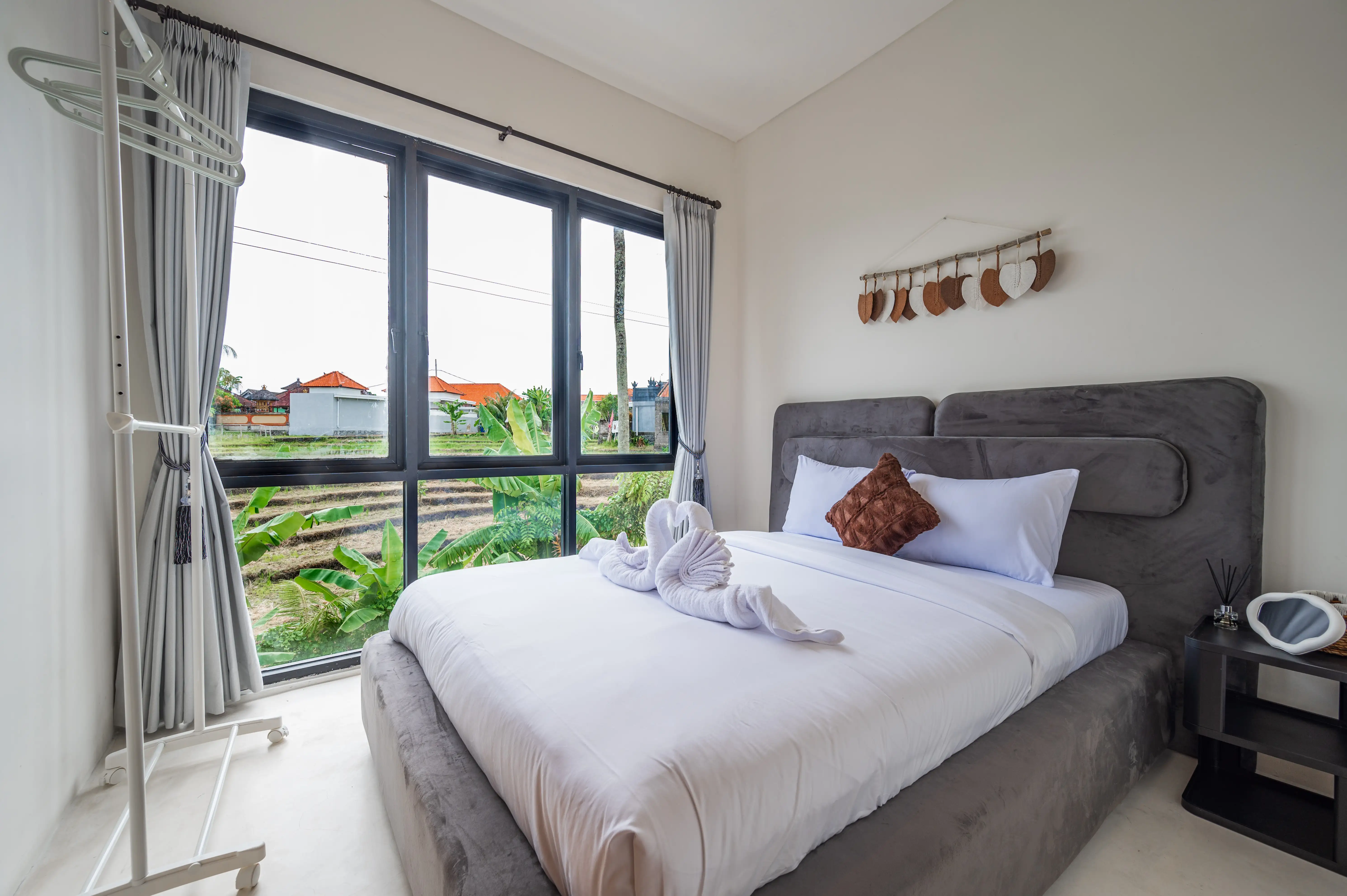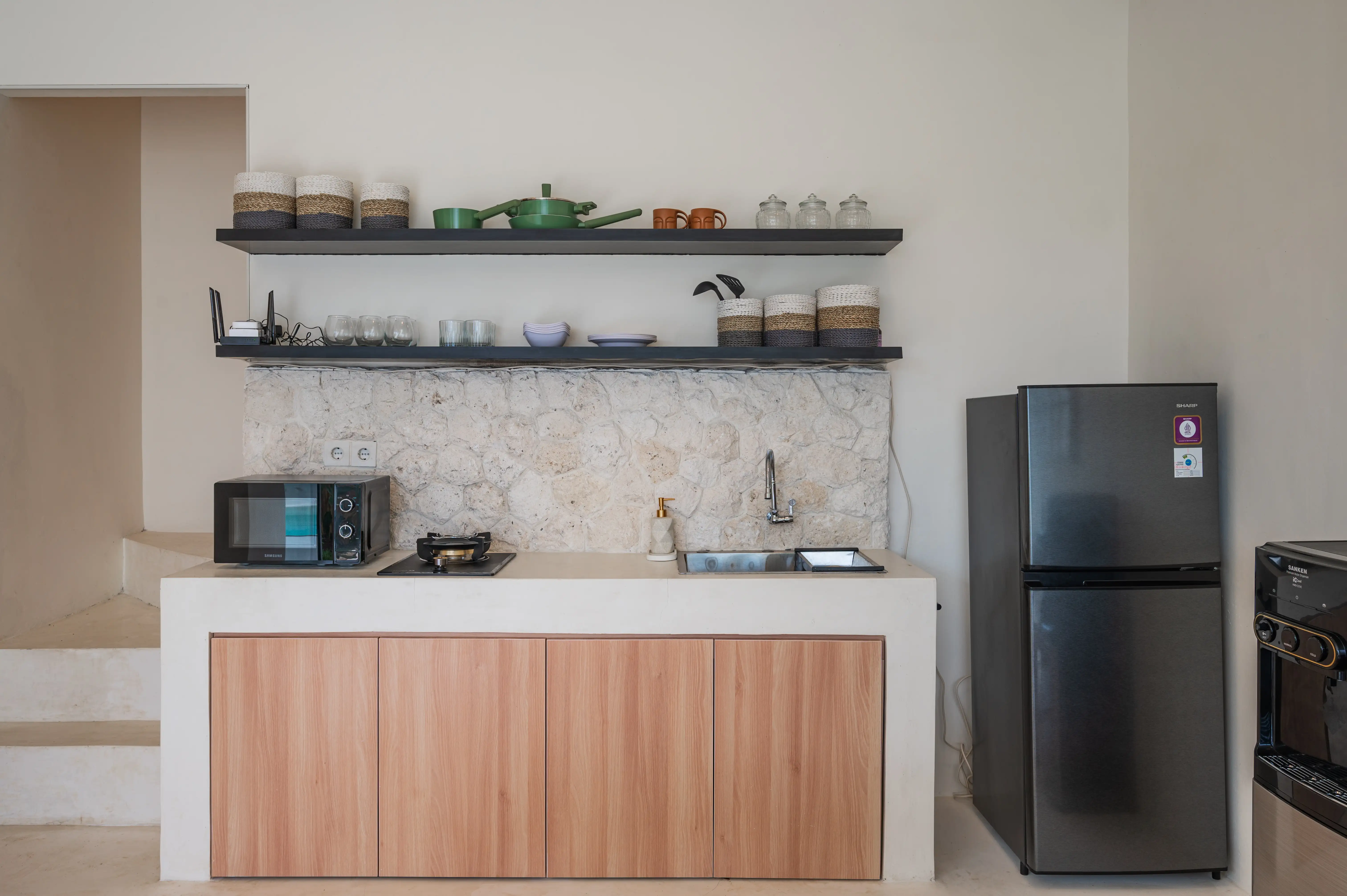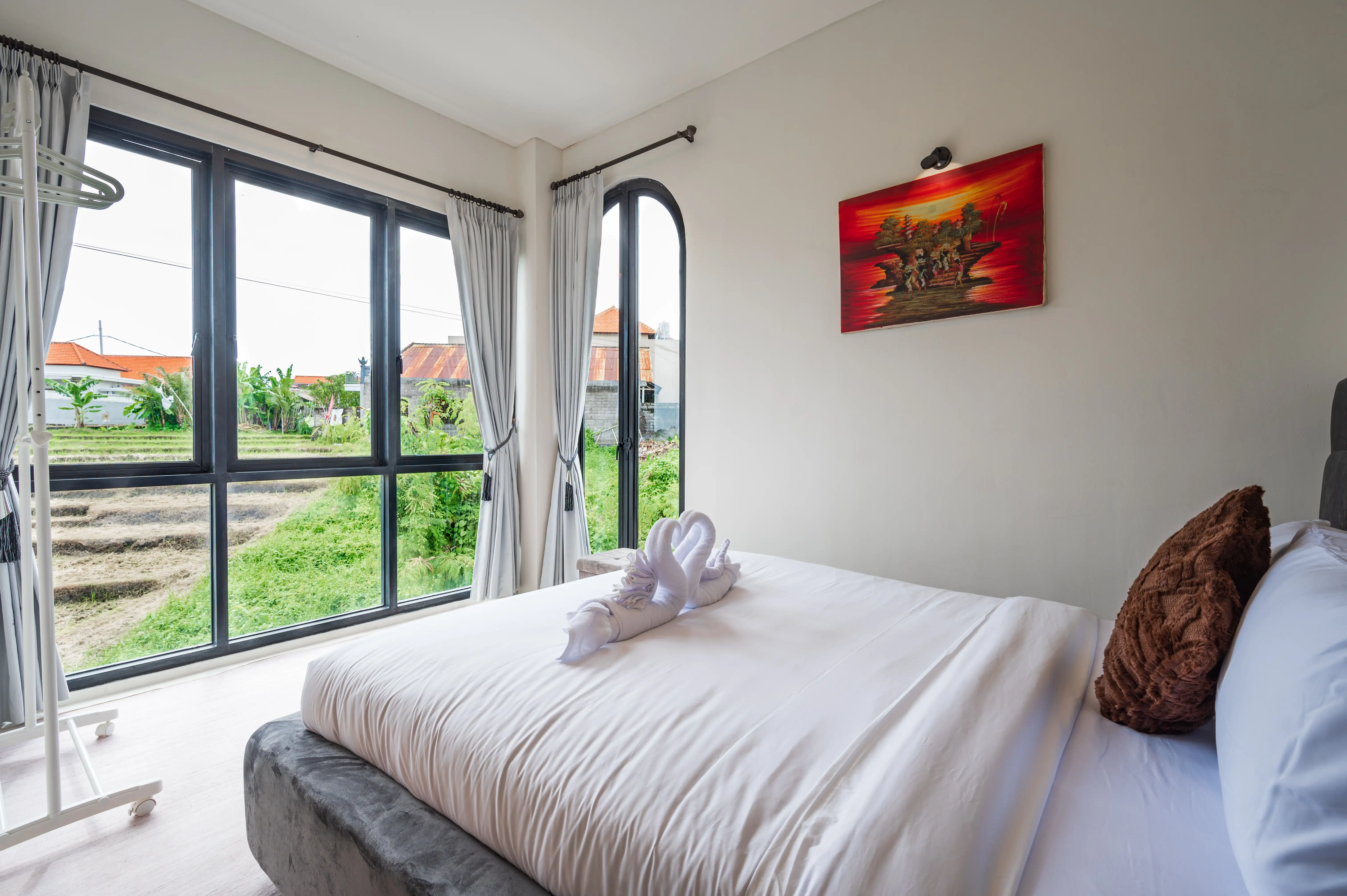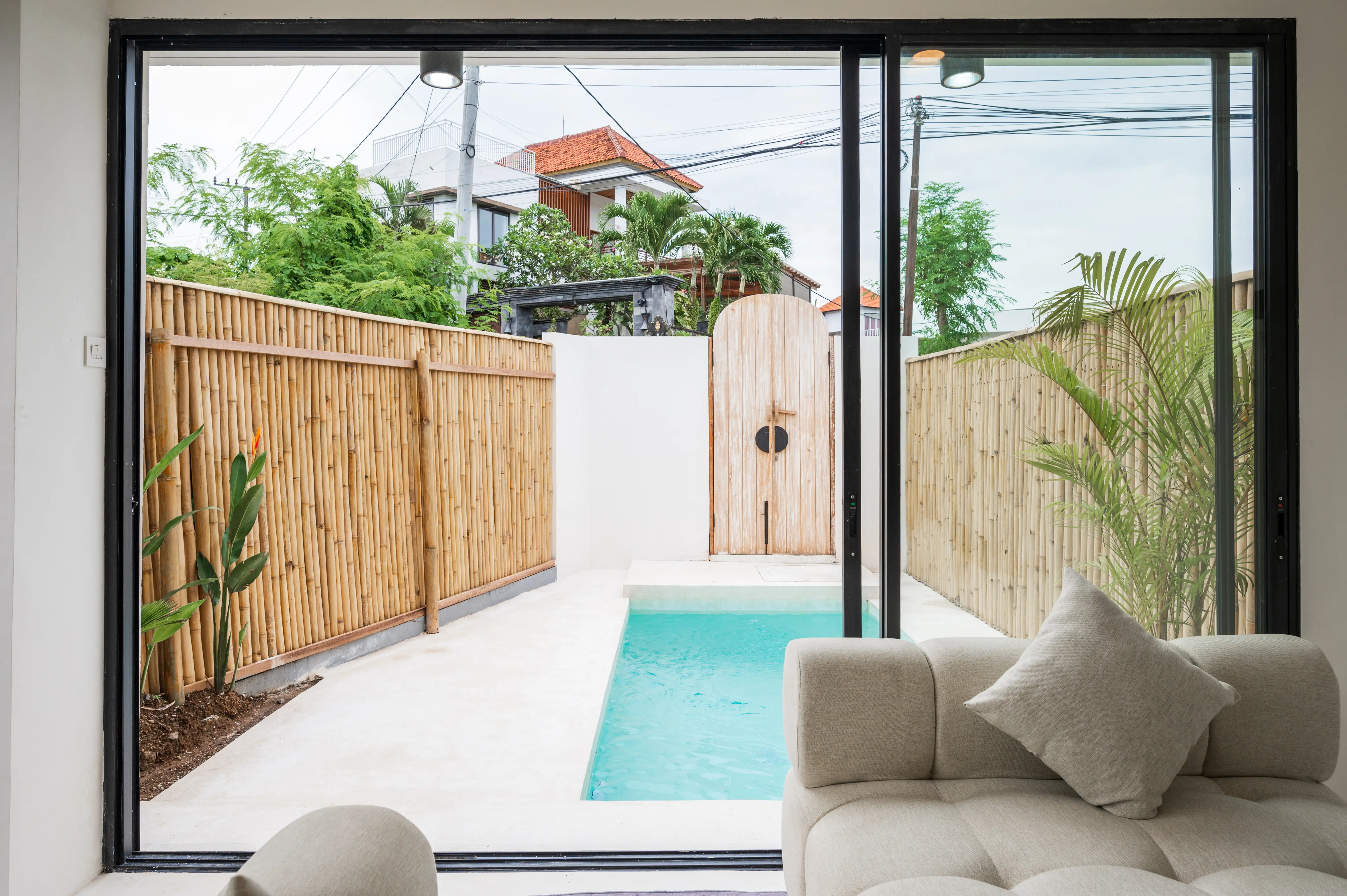 Откройте для себя воплощение современной жизни с этой потрясающей виллой с одной спальней + офисным пространством, расположенным в спокойном районе Бабакан, всего в 10 минутах езды от знаменитого пляжа Бату-Болонг. Эта вилла сочетает в себе современный дизайн с тропическим очарованием, создавая гармоничное жилое пространство, идеально подходящее для отдыха и развлечений. Гладкий архитектура имеет обширные стеклянные двери, которые открываются к частному бассейну, позволяя естественному свету затопить интерьер, обеспечивая бесшовный опыт жизни в помещении. Кроме того, на вилле открывается захватывающий вид на окружающие террасы с рисовым рисом, укрепляя спокойную атмосферу. Жилая зона с открытой планировкой украшена стильной мебелью, в том числе удобными сидениями, шикарными осветительными приборами и вкусным декором, что делает ее привлекательным местом для семейных встреч или интимных вечеров.