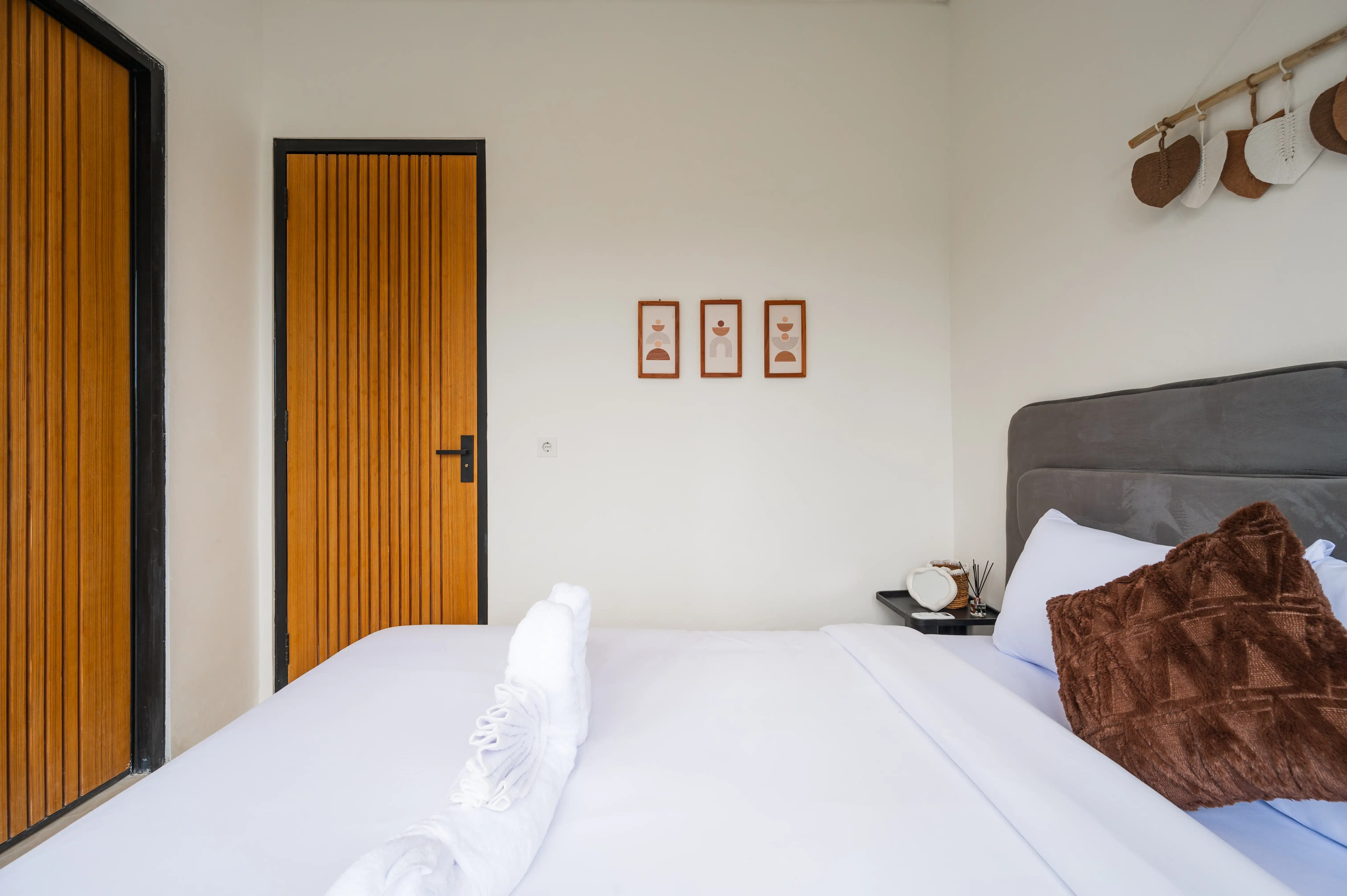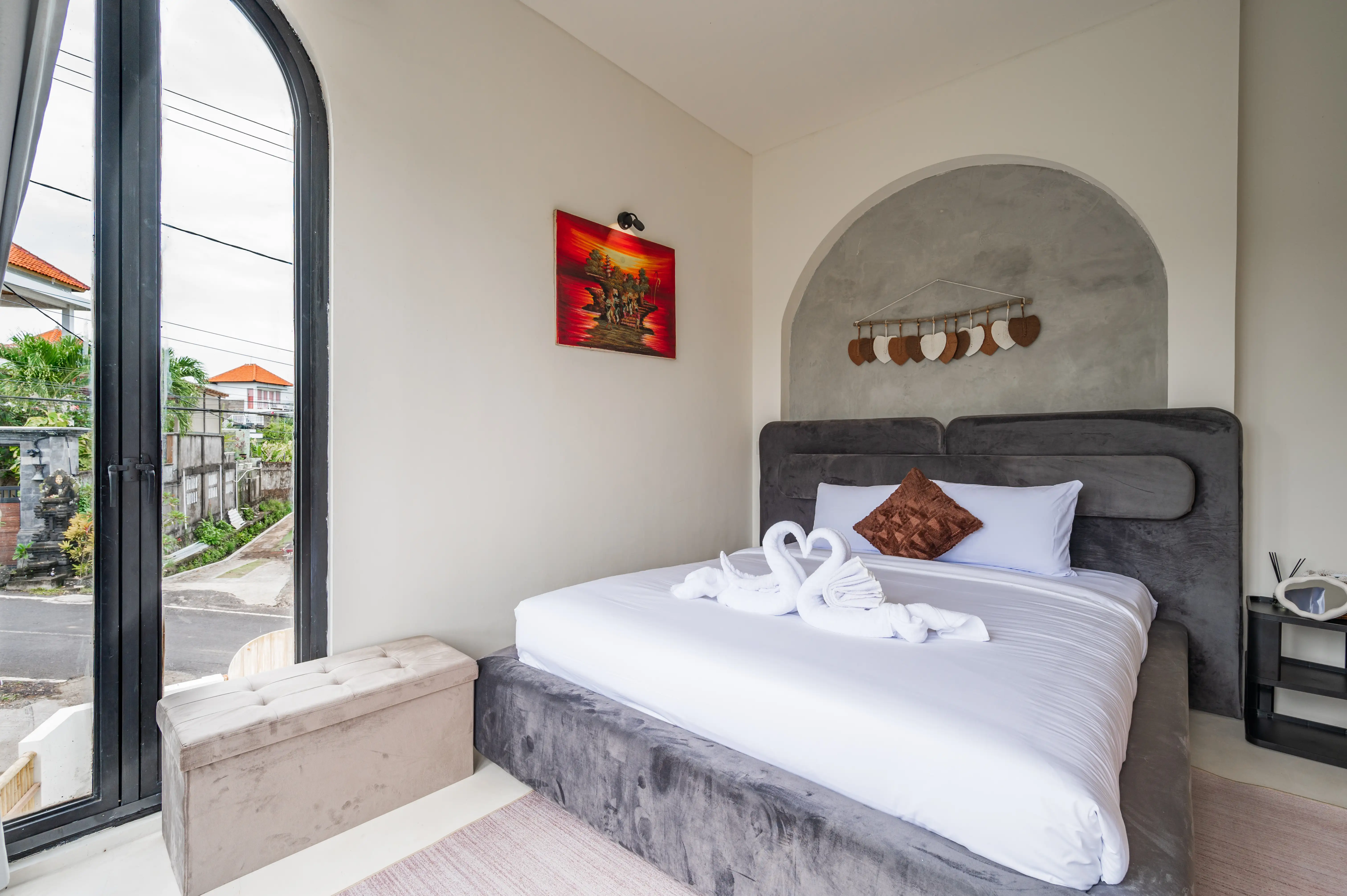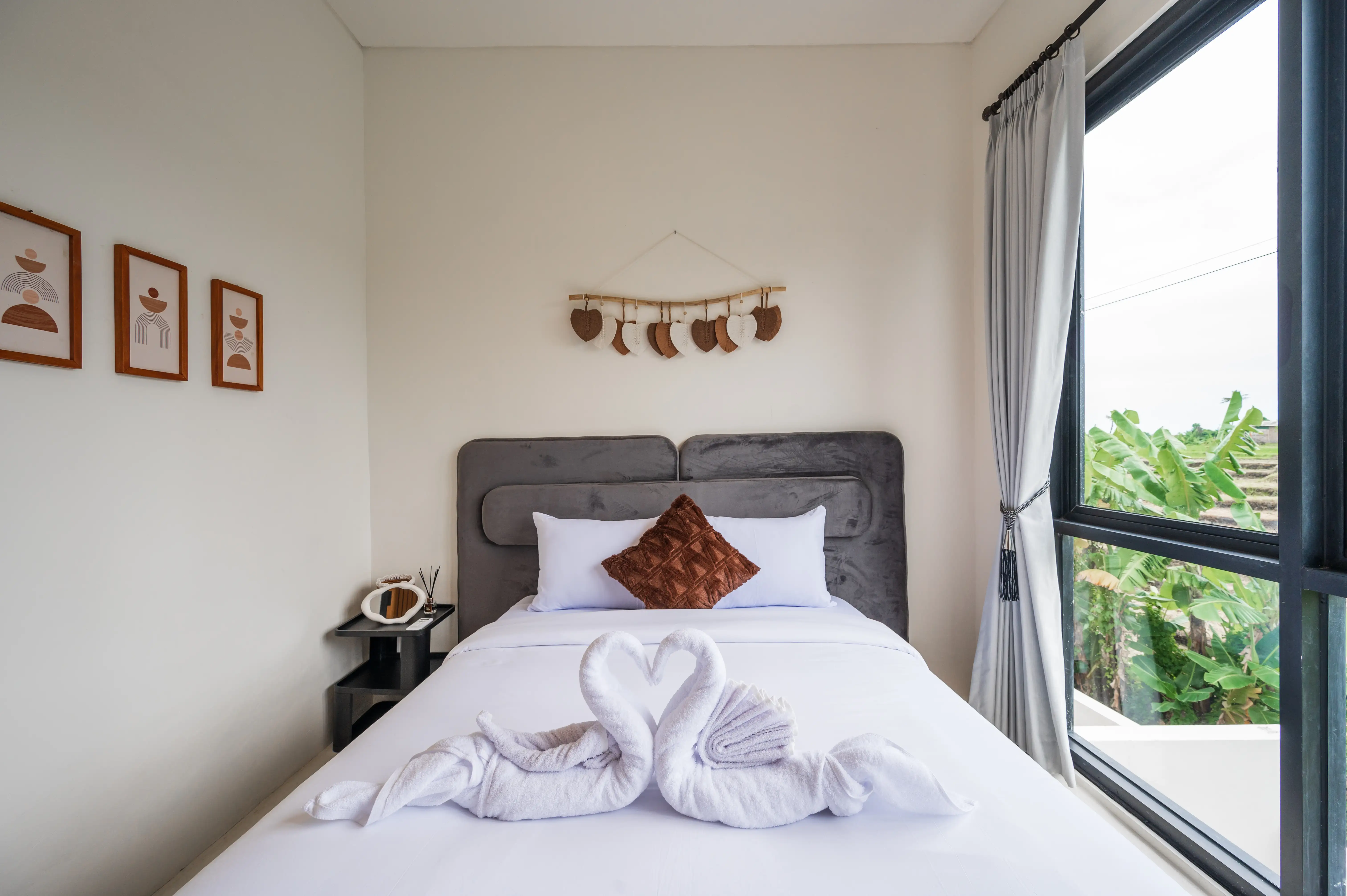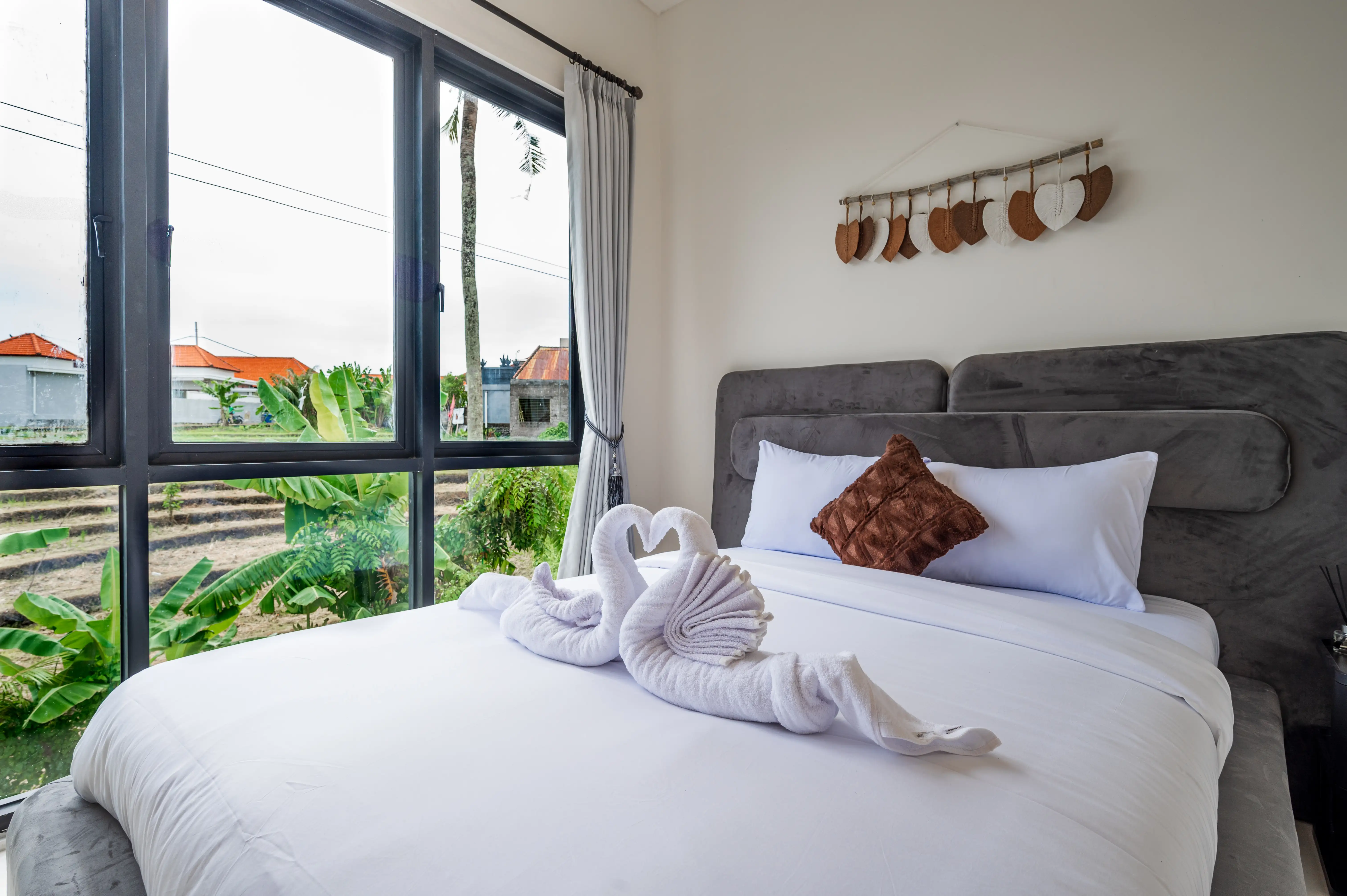 Откройте для себя воплощение современной жизни с этой потрясающей виллой с одной спальней + офисным пространством, расположенным в спокойном районе Бабакан, всего в 10 минутах езды от знаменитого пляжа Бату-Болонг. Эта вилла сочетает в себе современный дизайн с тропическим очарованием, создавая гармоничное жилое пространство, идеально подходящее для отдыха и развлечений. Гладкий архитектура имеет обширные стеклянные двери, которые открываются к частному бассейну, позволяя естественному свету затопить интерьер, обеспечивая бесшовный опыт жизни в помещении. Кроме того, на вилле открывается захватывающий вид на окружающие террасы с рисовым рисом, укрепляя спокойную атмосферу. Жилая зона с открытой планировкой украшена стильной мебелью, в том числе удобными сидениями, шикарными осветительными приборами и вкусным декором, что делает ее привлекательным местом для семейных встреч или интимных вечеров.