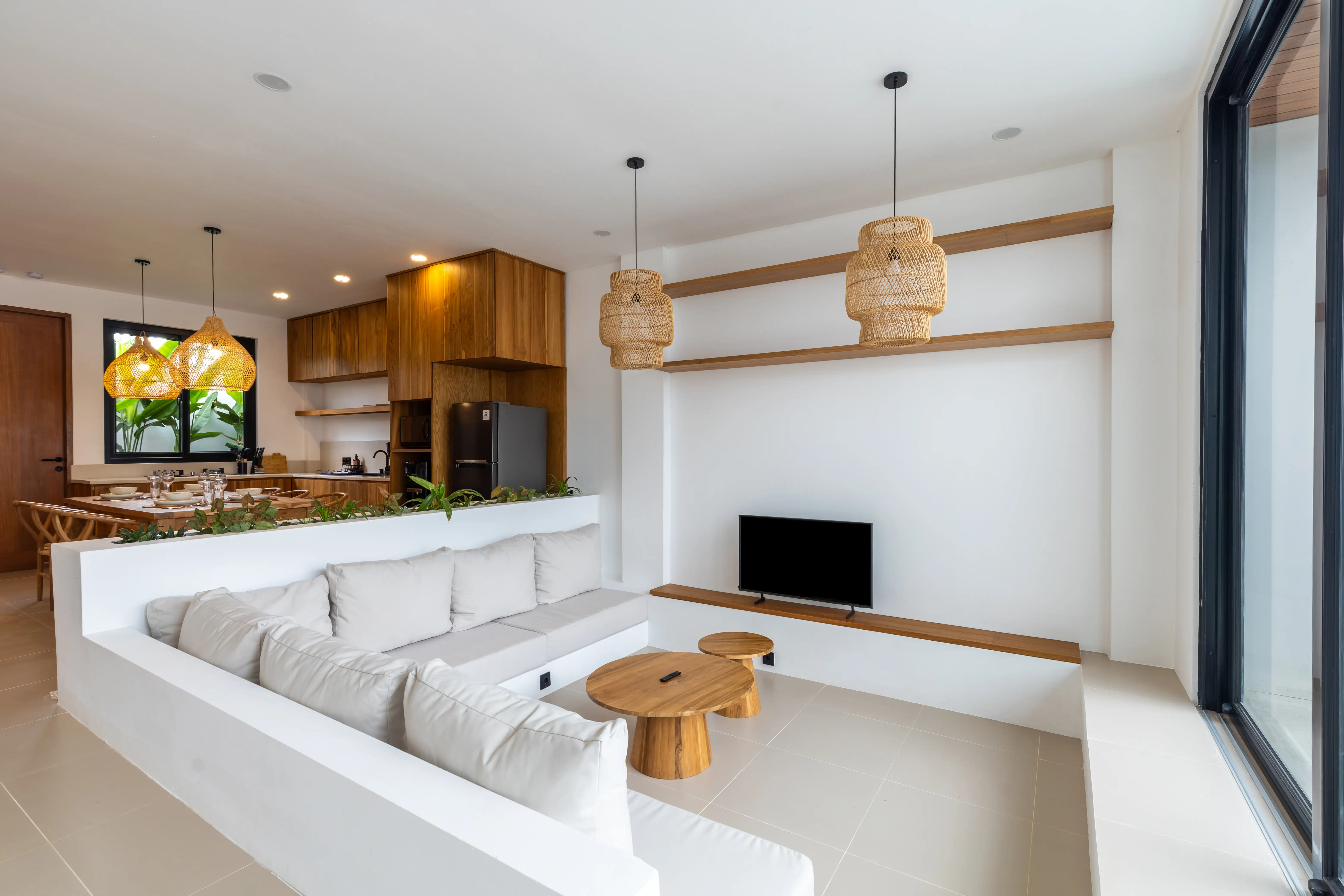 Эта современная вилла с 2 спальнями расположена в тихом районе Тумбак-Баюх, всего в 10 минутах езды от пляжа Переренан. Он предлагает теплый, современный дизайн с тщательно подобранными натуральными элементами - деревянной отделкой, мягким освещением и стильной мебелью, которые создают гостеприимную атмосферу. В закрытой гостиной есть встроенные сидения, телевизор с плоским экраном и раздвижные стеклянные двери, которые соединяют пространство с наружной зоной. Полностью оборудованная кухня поставляется с обеденным столом, современной техникой и щедрым хранилищем, что делает ее подходящей как для краткосрочного пребывания, так и для долгосрочного проживания.