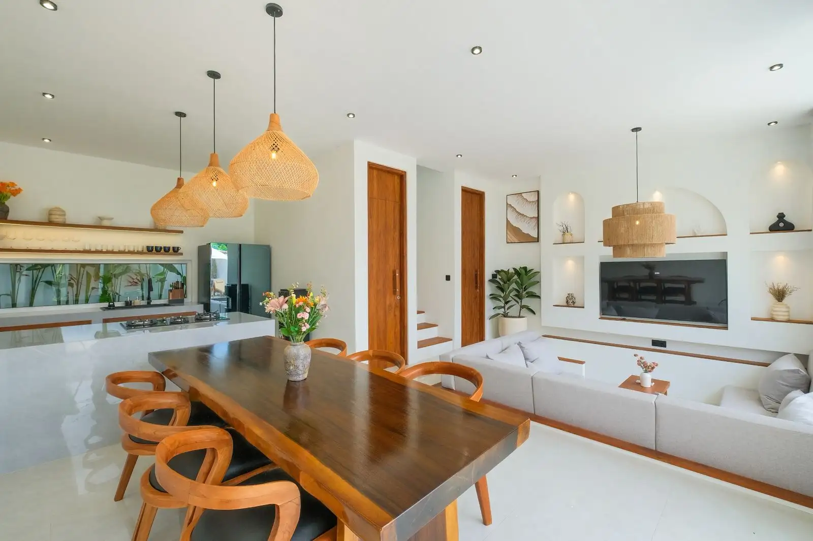 Расширяя 137 квадратных метров жилой площади на земельном участке площадью 142 квадратных метра, эта вилла имеет обширный и красиво оформленный интерьер, дополненный спокойным видом на сад. Огороженный жилой район, со вкусом обставленный современной элегантностью, предлагает гостеприимное убежище. Каждая из двух спален спроектирована как убежище комфорта, в то время как три ванные комнаты оснащены премиальными светильниками для спа-подобного отдыха. Тщательно благоустроенный сад обеспечивает идиллическую обстановку для наслаждения на открытом воздухе, что делает эту виллу идеальным убежищем для отдыха. Не упустите этот уникальный шанс получить премиальную недвижимость, которая воплощает суть роскошного образа жизни и инвестиционного потенциала Бали.