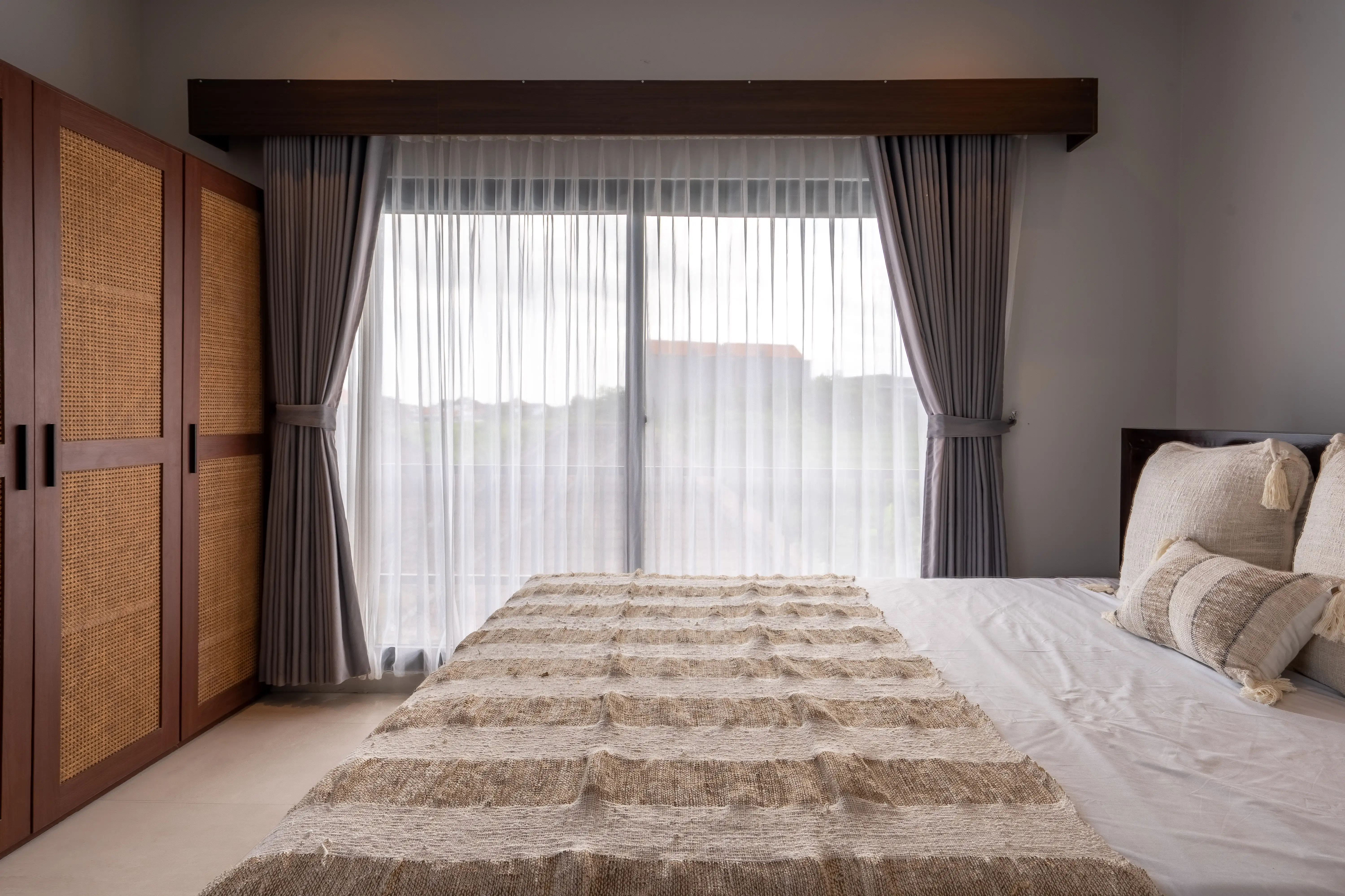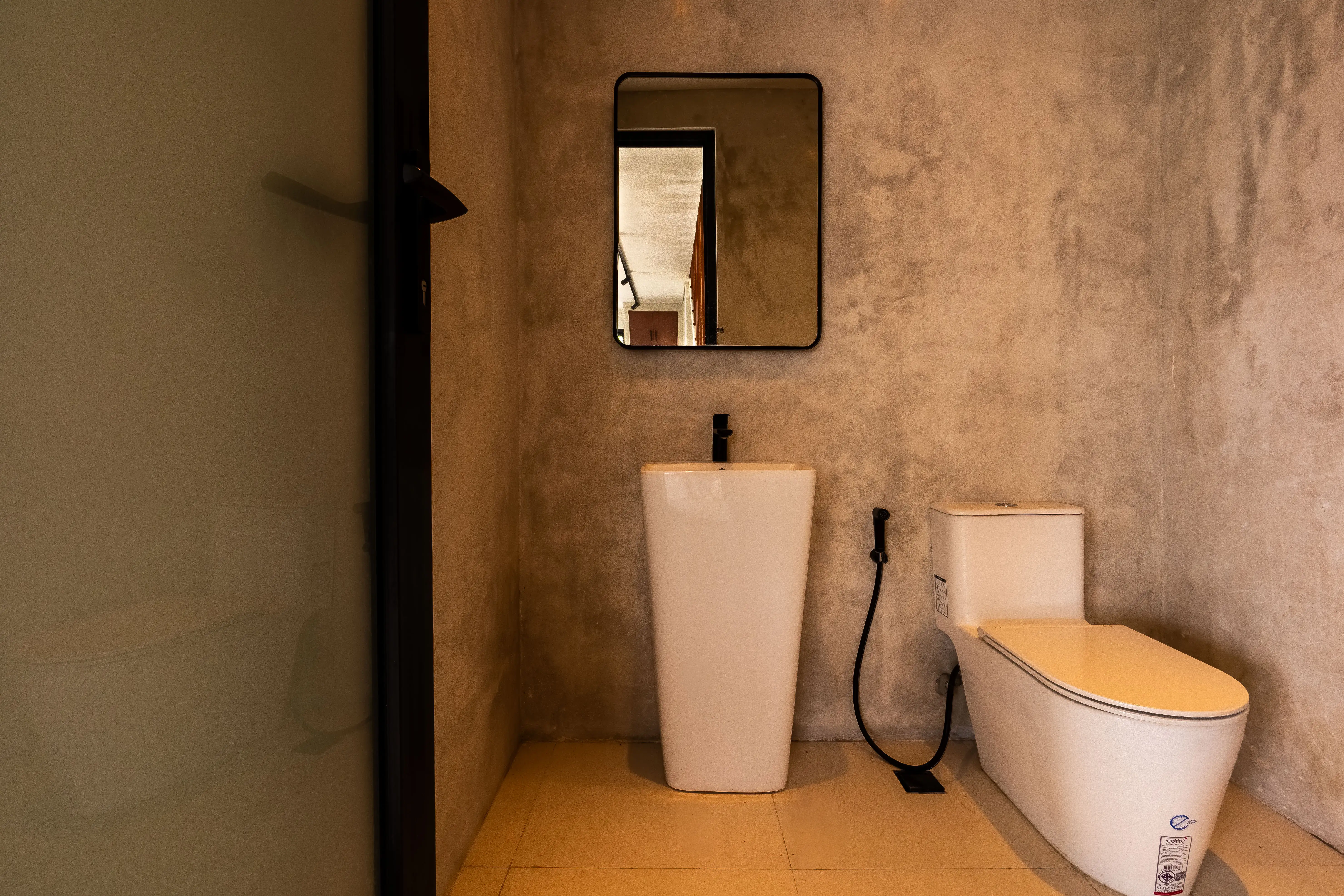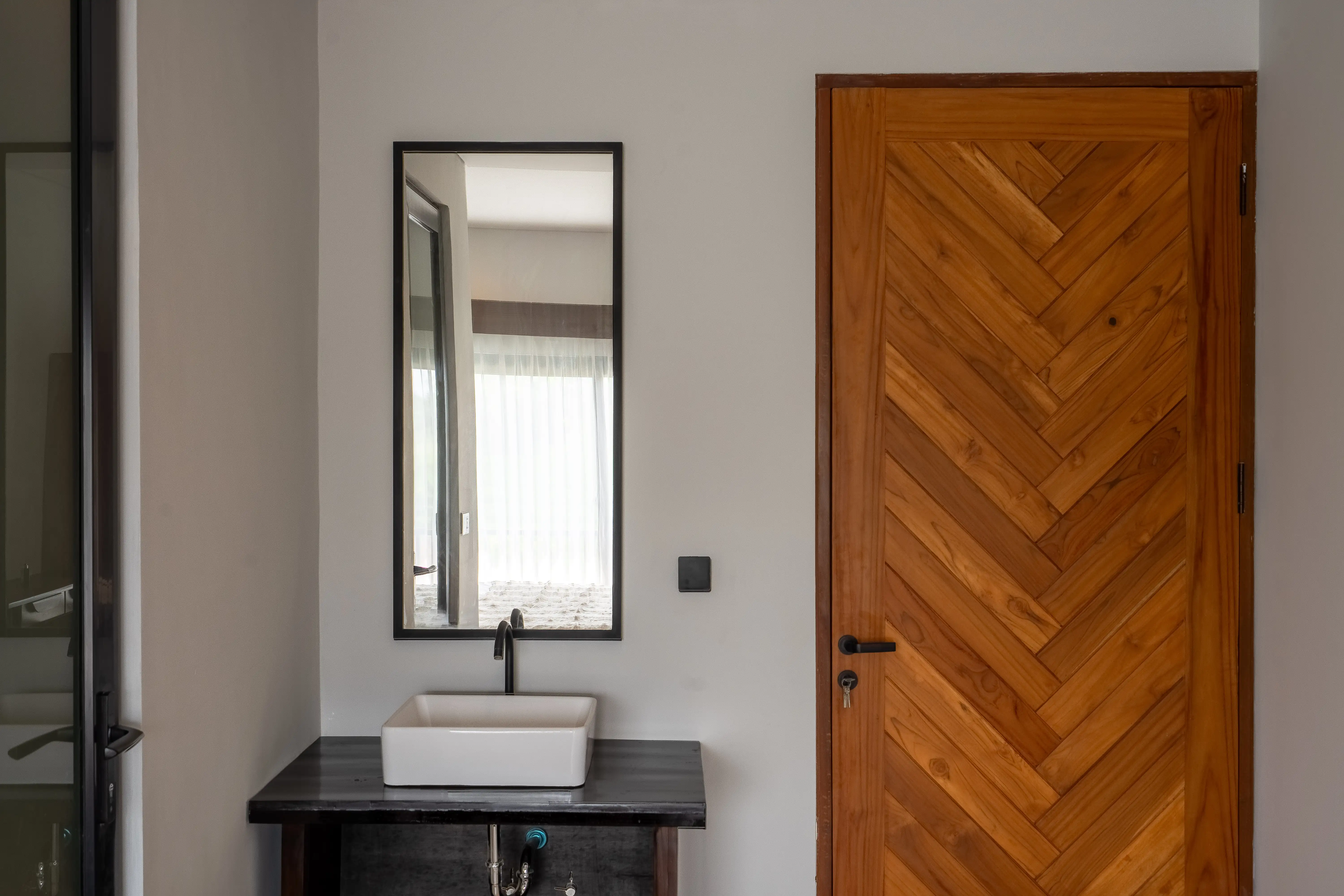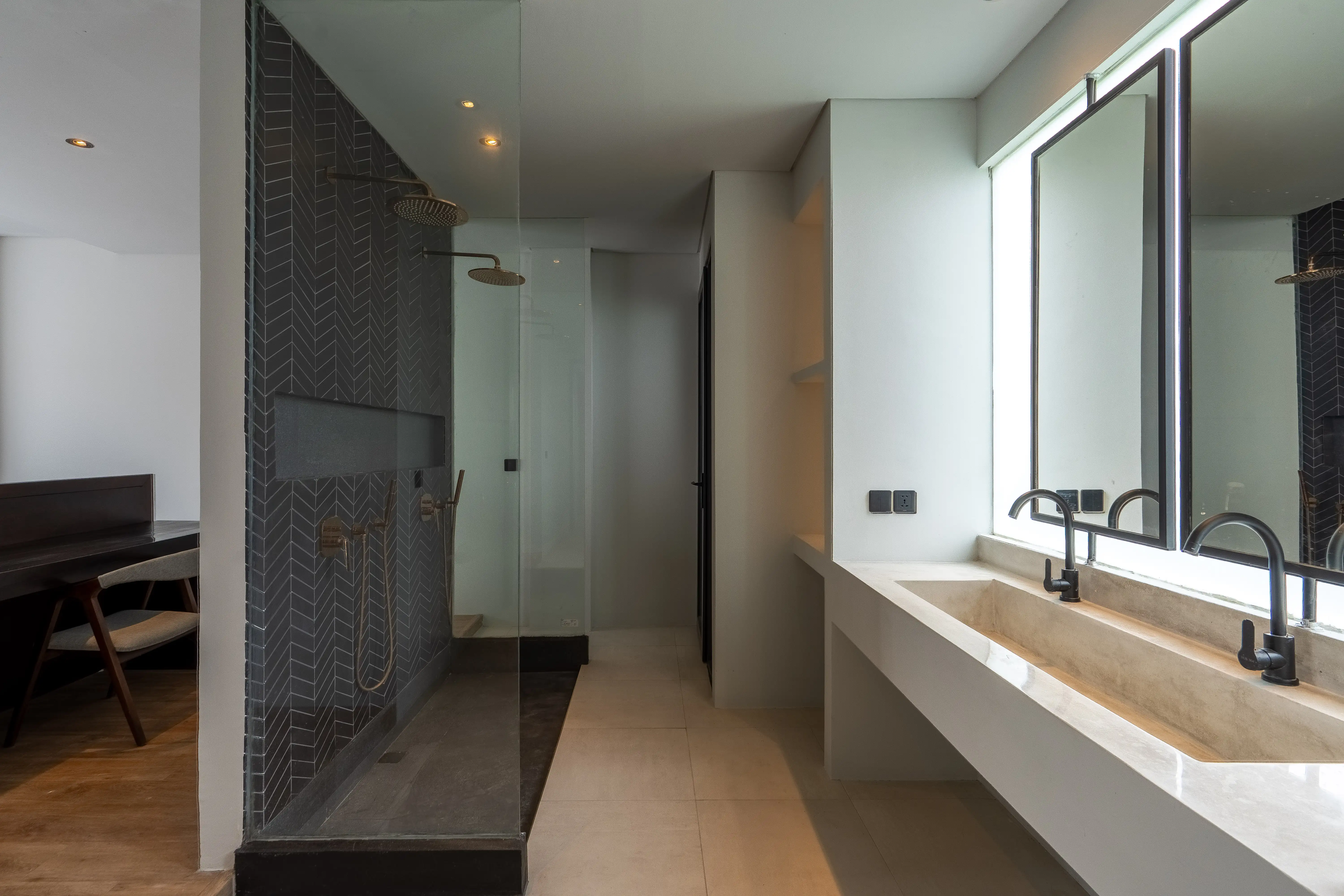 Освещение над островом сочетает элегантность с функциональностью, в то время как открытая планировка поддерживает плавный поток между кухней, столовой и гостиной. Вилла включает в себя три спальни, каждая из которых предназначена для обеспечения комфорта и конфиденциальности. Мягкие нейтральные тона создают успокаивающую среду, в то время как такие детали, как утопленные стеллажи, настенное освещение и премиальная отделка, усиливают современное ощущение. Ванная комната оснащена современной отдельно стоящей раковиной, настенным зеркалом и туалетом, сохраняя минималистскую тему. Умное использование пространства по всей вилле обеспечивает функциональность без ущерба для стиля.