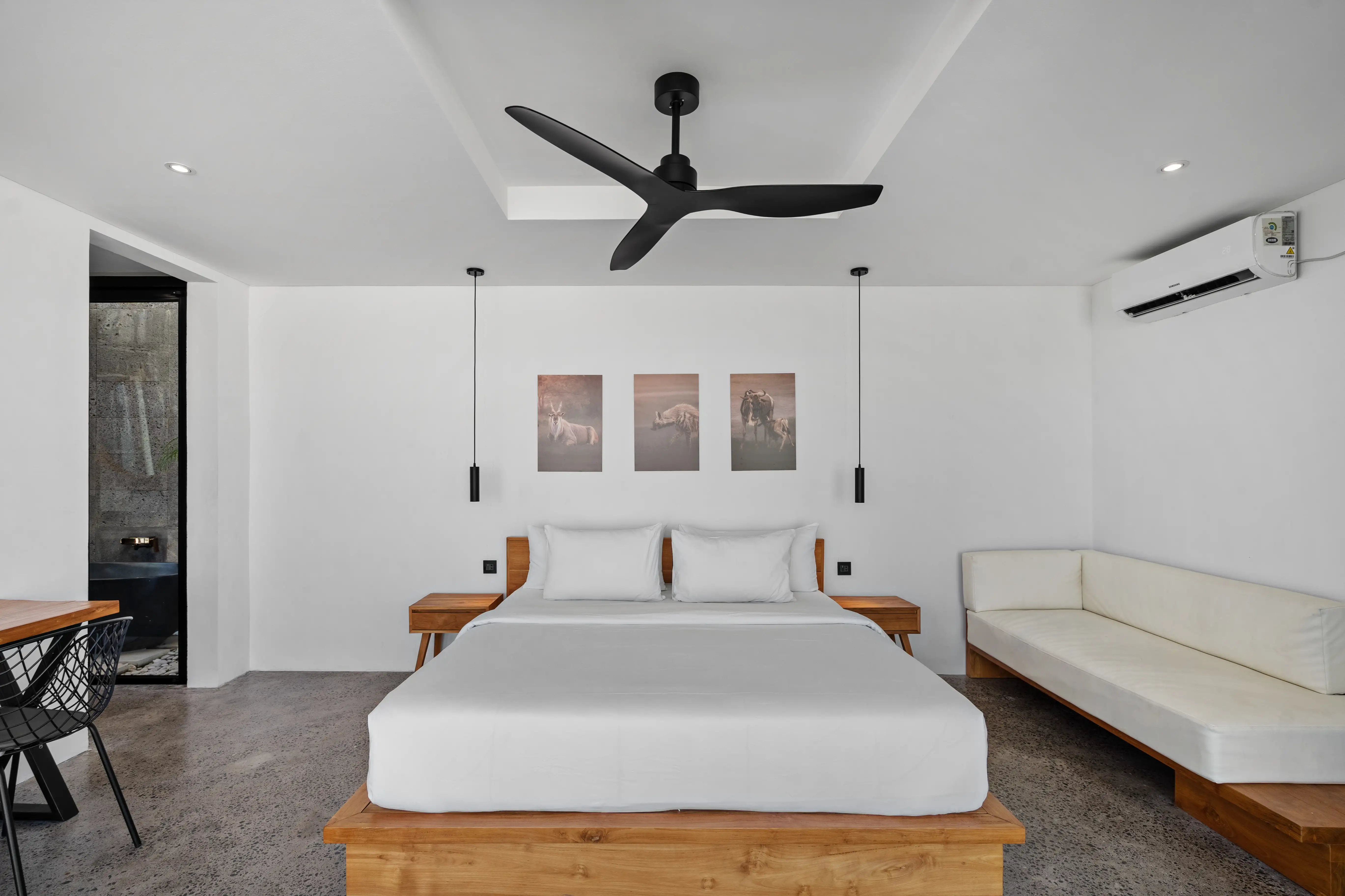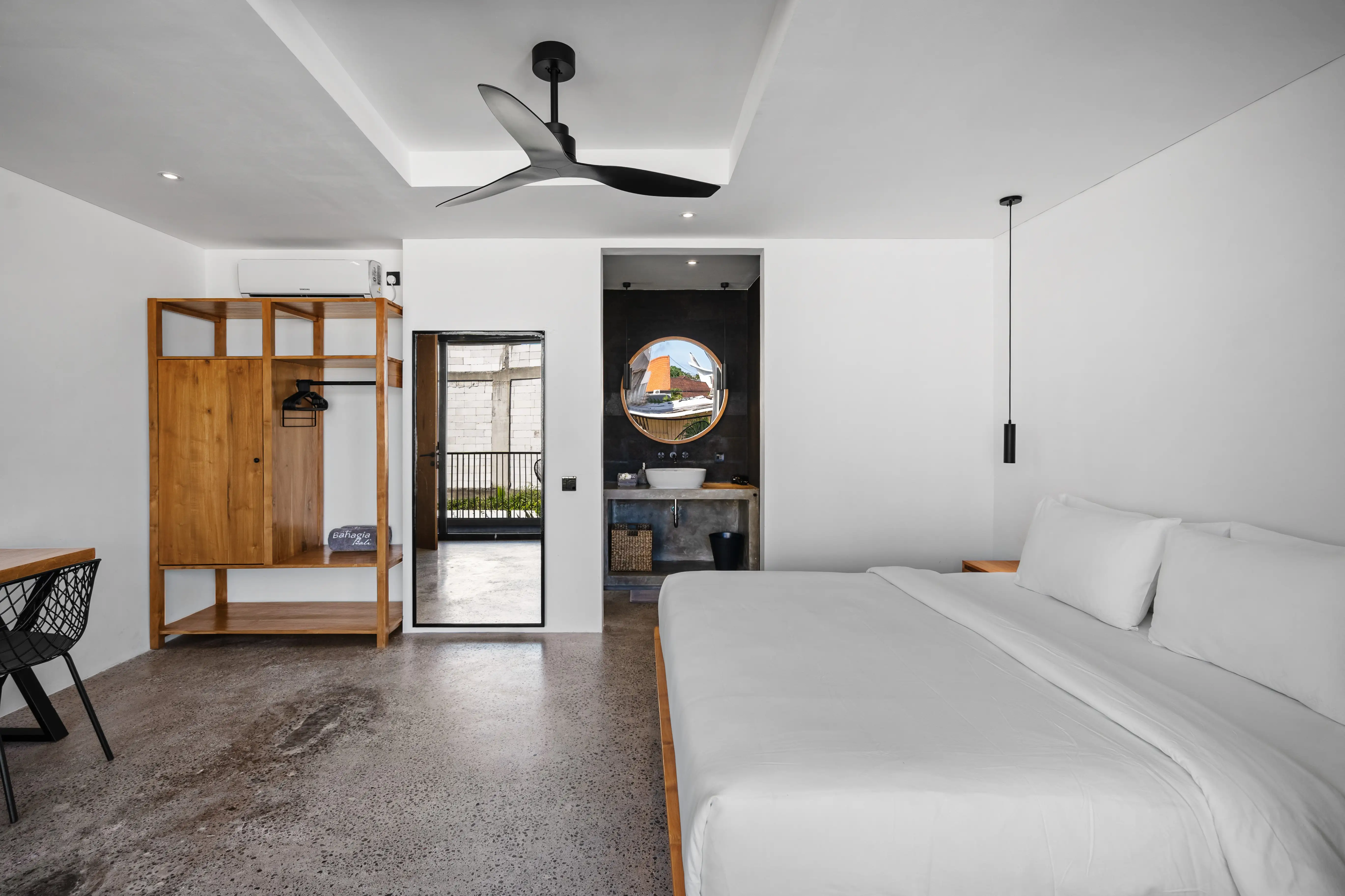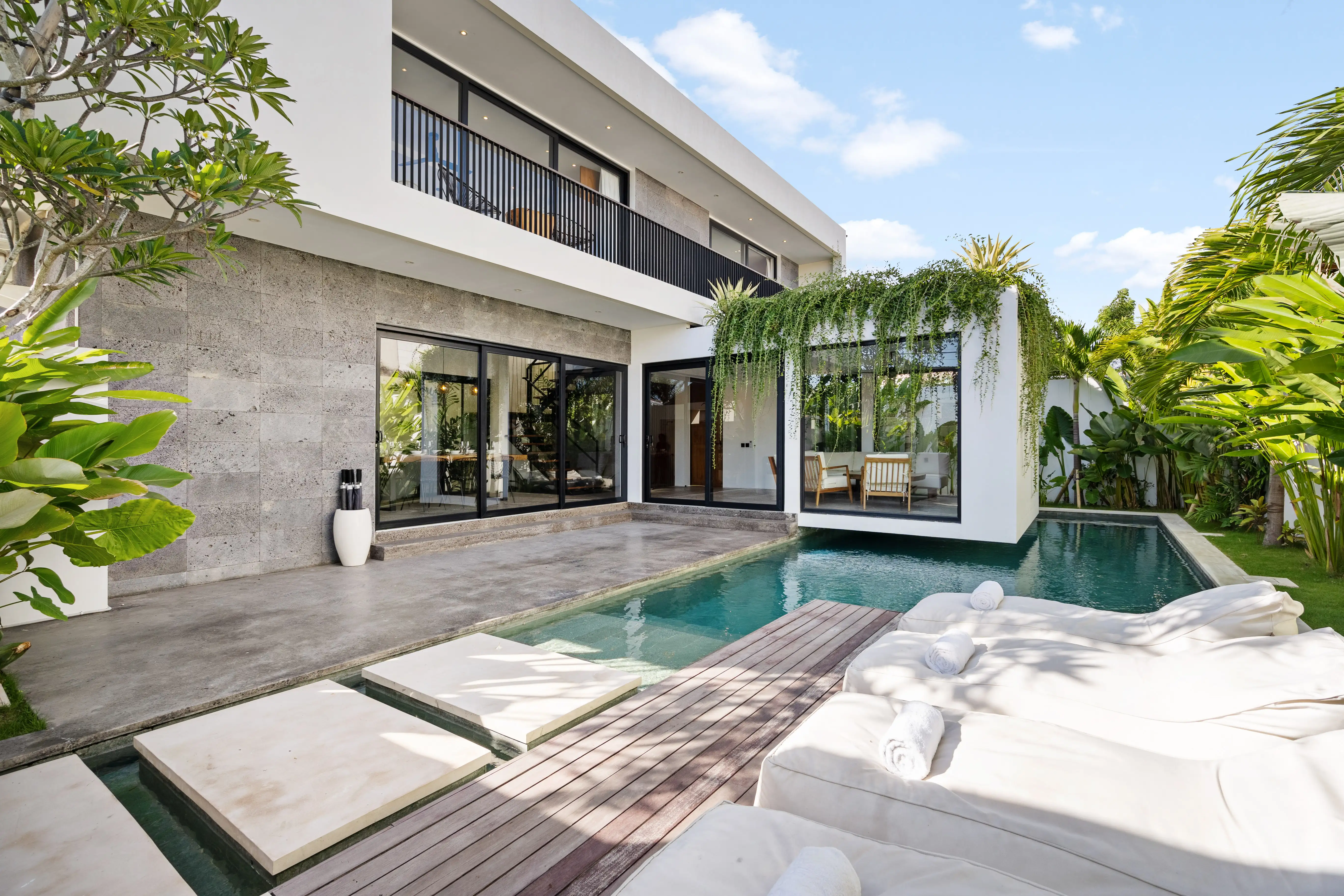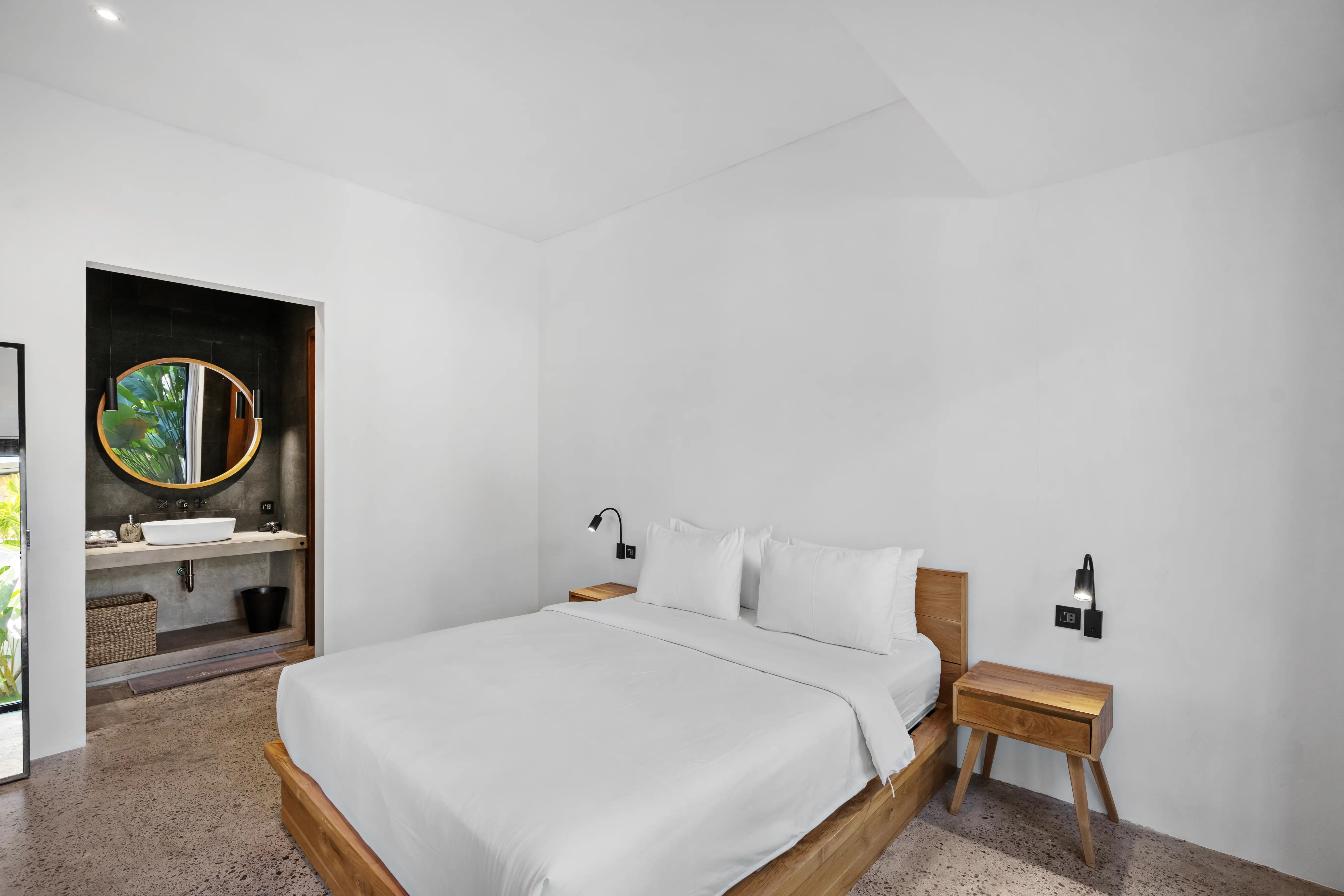 Вилла имеет три хорошо пропорциональной спальни, каждая из которых спроектирована с учетом комфорта и конфиденциальности, поддерживается современными ванными комнатами и качественной отделкой по всему. Макет подчеркивает функциональность и естественный поток, с закрытыми жилыми и обеденными зонами, которые соответствуют климату Бали, привлекая широкий спектр профилей гостей. Большие окна и чистые архитектурные линии позволяют естественному свету наполнять интерьеры, создавая яркую и гостеприимную атмосферу. Наружные зоны продуманно устроены, обеспечивая частный бассейн и гостиное пространство, которые улучшают впечатления гостей и повышают привлекательность бронирования на онлайн-платформах аренды.