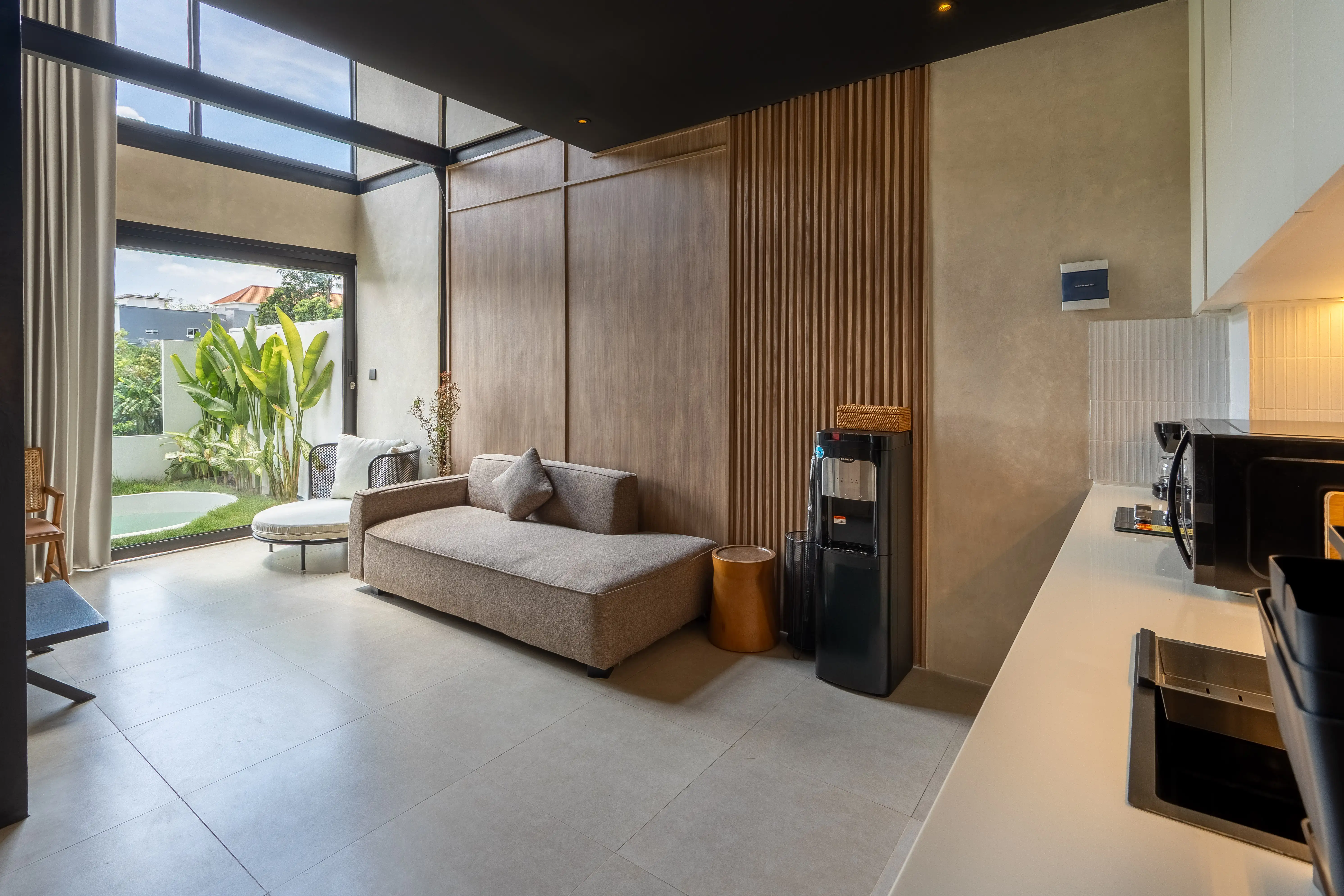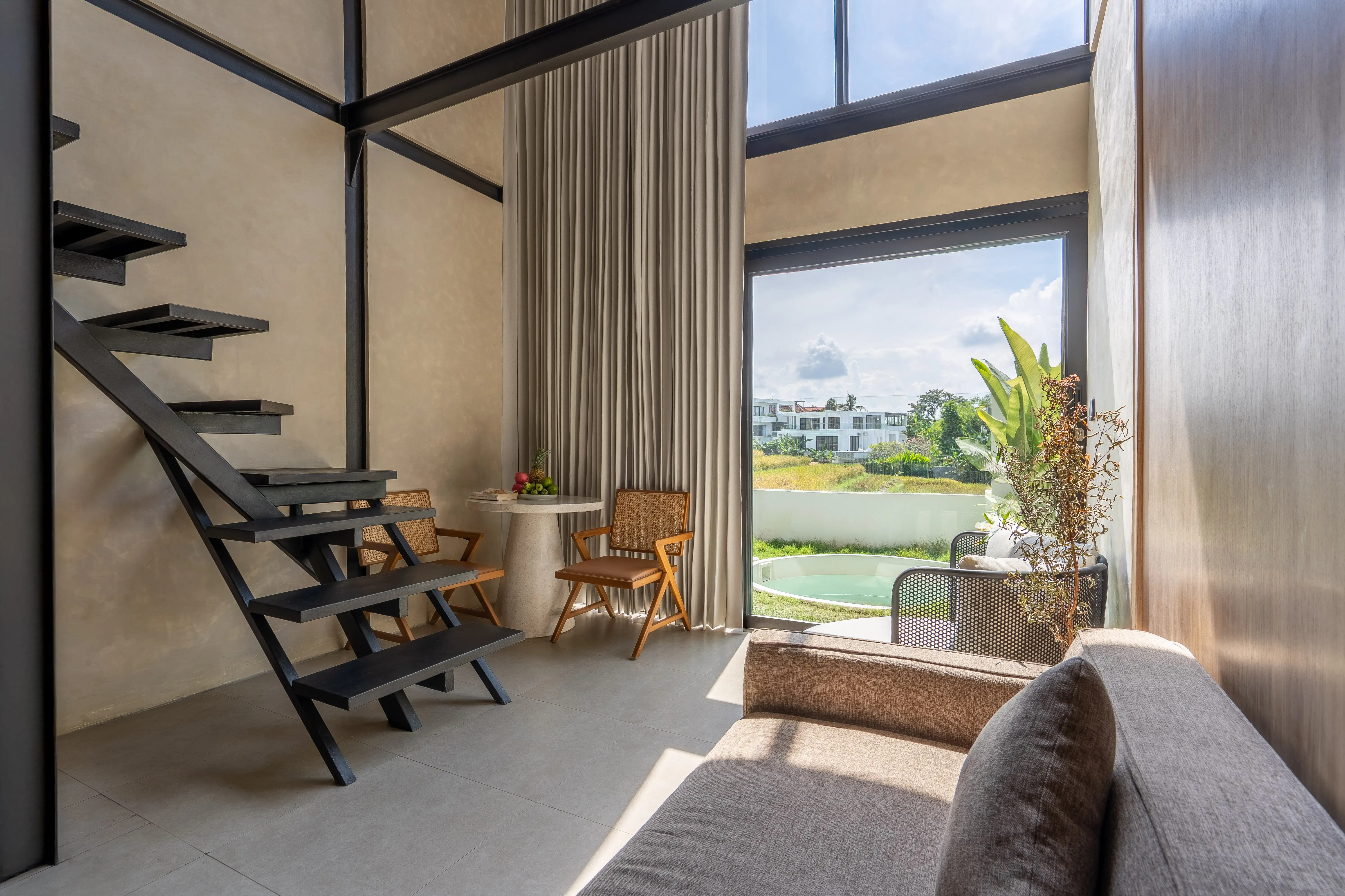 Внутри дизайн сочетает в себе теплые, земляные тона с современными промышленными элементами. Потолок с двойной высотой дает жилой площади просторное ощущение, усиленное естественным светом, который заливает большие стеклянные двери. Спальня на чердаке обеспечивает уютное, но функциональное спальное пространство, в то время как нижний уровень включает в себя компактный обеденный уголок, изящную современную лестницу и продуманно интегрированную кухню. Такие предметы, как сырые бетонные стены, матовые черные металлические рамы и мягкие деревянные акценты, придают этому свойству изысканный и вневременный шарм. Эта недвижимость - больше, чем просто красивое жилое пространство - это также хорошая инвестиционная возможность. Растущий спрос на компактные виллы в Канггу делает этот объект привлекательным как для долгосрочной, так и для краткосрочной аренды. Благодаря своему стратегическому расположению недалеко от центра Кангу, но в тихом жилом кармане, он привлекает цифровых кочевников, одиноких путешественников и пары. Независимо от того, ищете ли вы личное убежище или недвижимость с постоянным возвратом аренды, этот лофт Babakan тикает все правильные коробки.