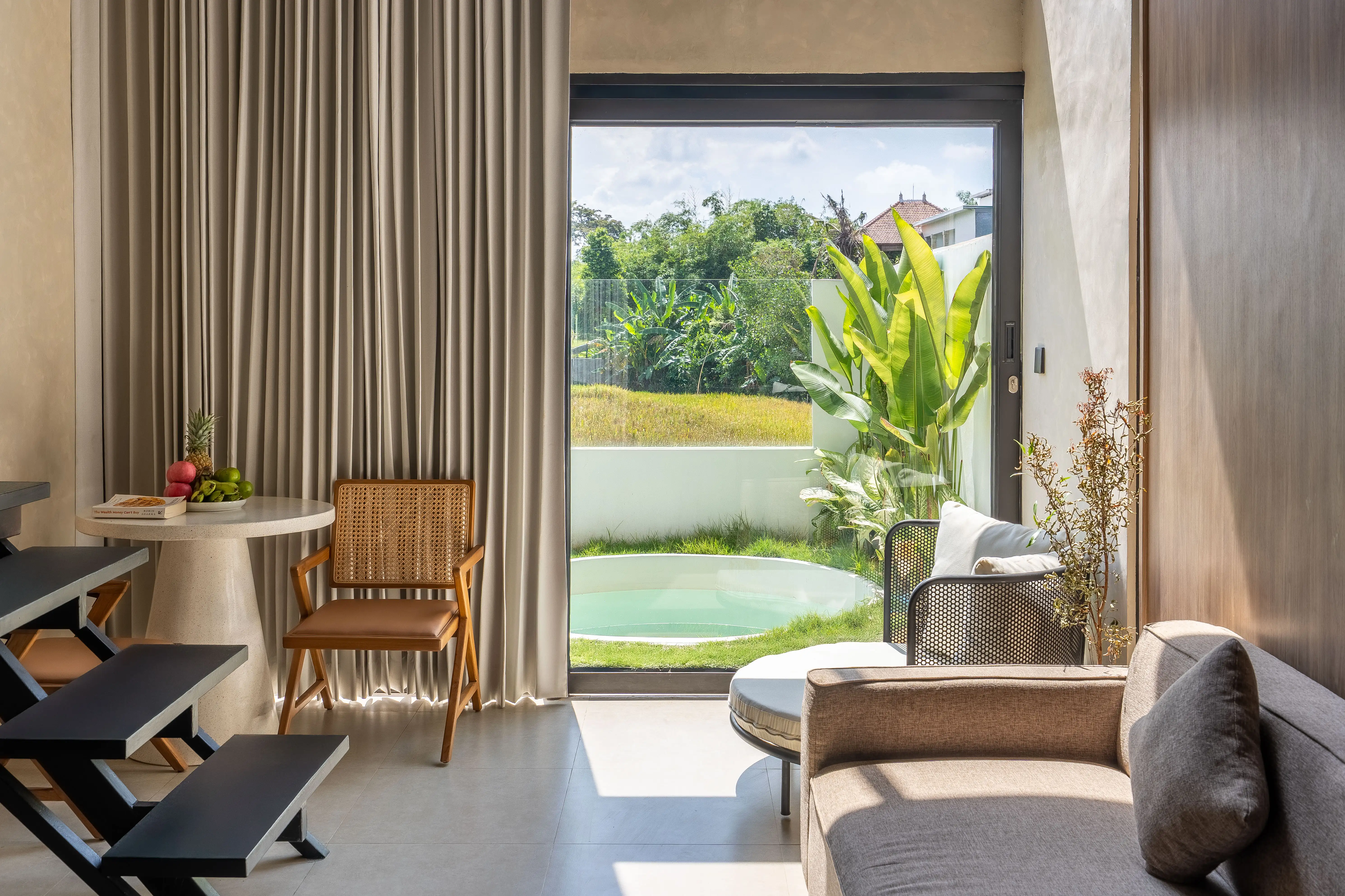Расположенный в тихом районе Бабакан, Кангу, этот лофт с 1 спальней предлагает идеальный баланс между стильным дизайном и тропической жизнью. Всего в 10 минутах езды от оживленного пляжа Бату-Болонг, эта недвижимость идеально подходит для тех, кто ищет спокойное отступление, которое все еще находится в пределах досягаемости оживленных кафе Canggu, мест для серфинга и коворкинг-центров. Лофт открывается в частный сад с круглым бассейном и имеет обширные окна от пола до потолка, которые обрамляют безмятежный вид на рисовое поле, размывая границу между комфортом в помещении и естественной красотой.
