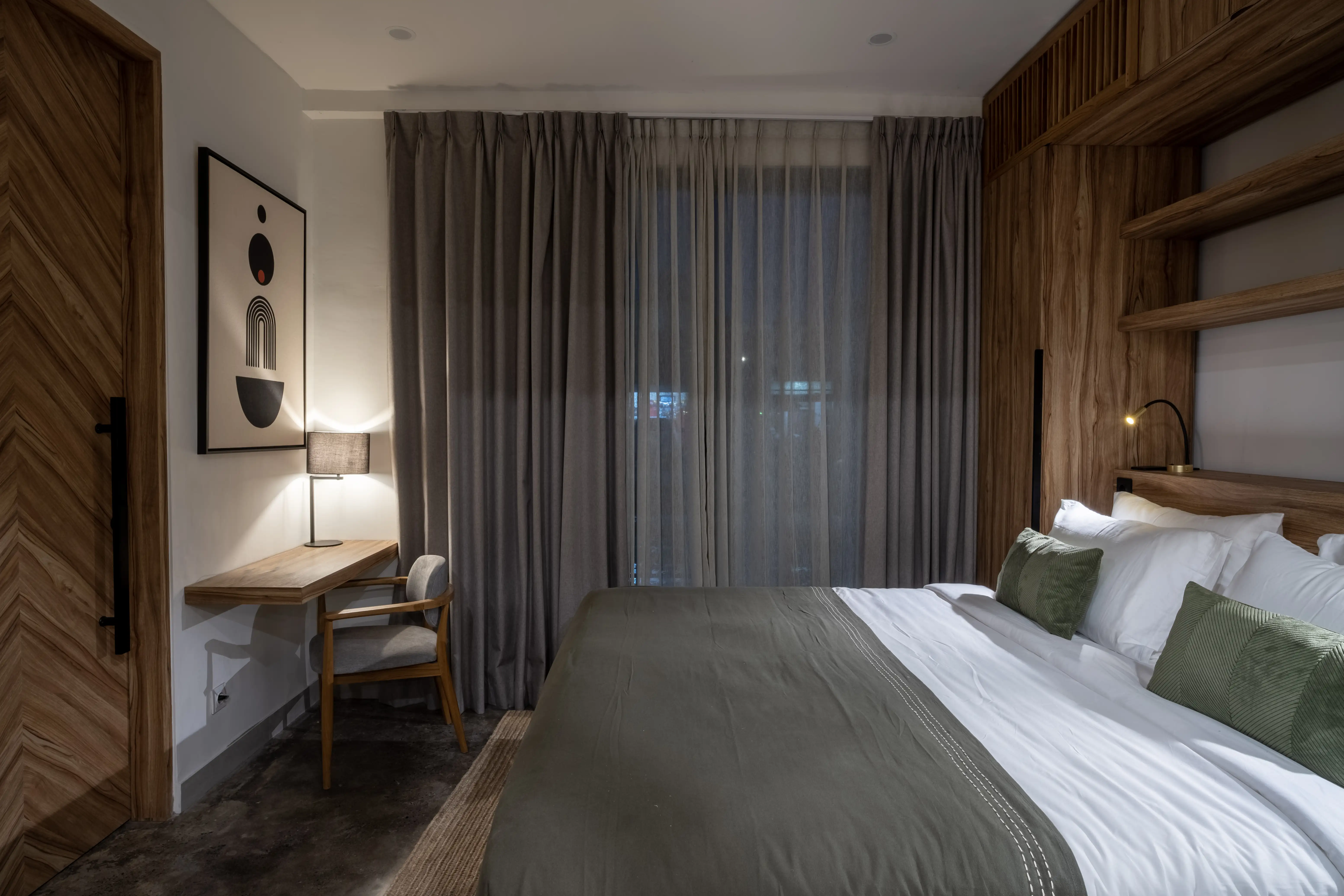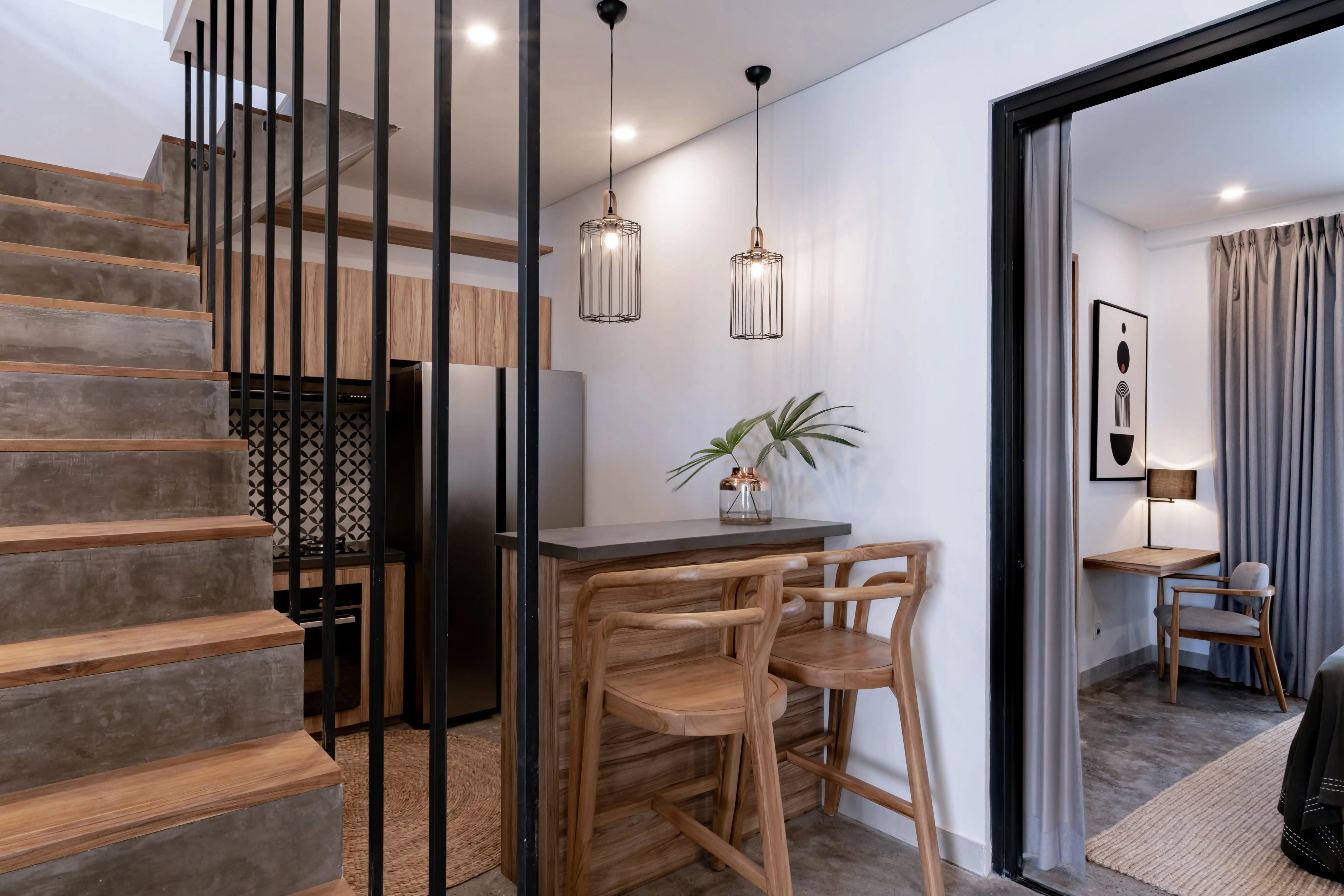 Каждое подразделение предлагает две хорошо оборудованные спальни с ванными комнатами, гладкие кухни с открытой планировкой, привлекательную гостиную и столовую зону и частный балкон или террасу. Интерьеры имеют деревянные акценты, нейтральные тона и большие окна для естественного освещения. Общие удобства включают гостиную на крыше и открытые пространства, идеально подходящие для отдыха или хостинга. Эти дома, спроектированные с учетом как краткосрочной аренды, так и долгосрочной жизни, полностью меблированы и готовы к эксплуатации в качестве комплекса по аренде бутиков, живут в качестве резиденции или и то, и другое.