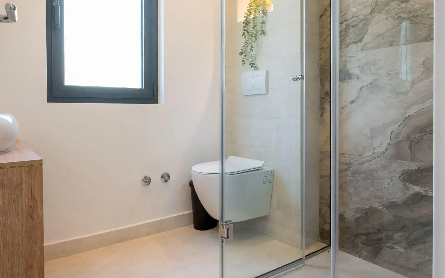 Просторная гостиная имеет прямой доступ к террасе и бесконечному бассейну. На этом же уровне находится открытая кухня и столовая. Вилла имеет четыре спальни, каждая с частной террасой и видом на море, а также четыре современные ванные комнаты. Также имеется подсобное помещение. Большая терраса с великолепным видом на море идеально подходит для отдыха и развлечений. Расширенные стеклянные проемы наполняют интерьер естественным светом, открывая захватывающий вид на море и окружающие горы.